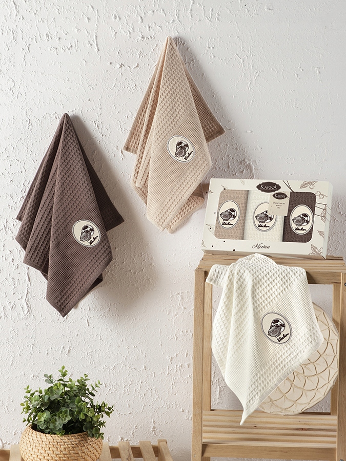 Nasz zestaw składa się z trzech ściereczek wykonanych w 100% z wysokiej jakości bawełny. Te wszechstronne ścierki o atrakcyjnej waflowej strukturze stanowią idealne rozwiązanie do czyszczenia wszelkich powierzchni w Twojej kuchni.