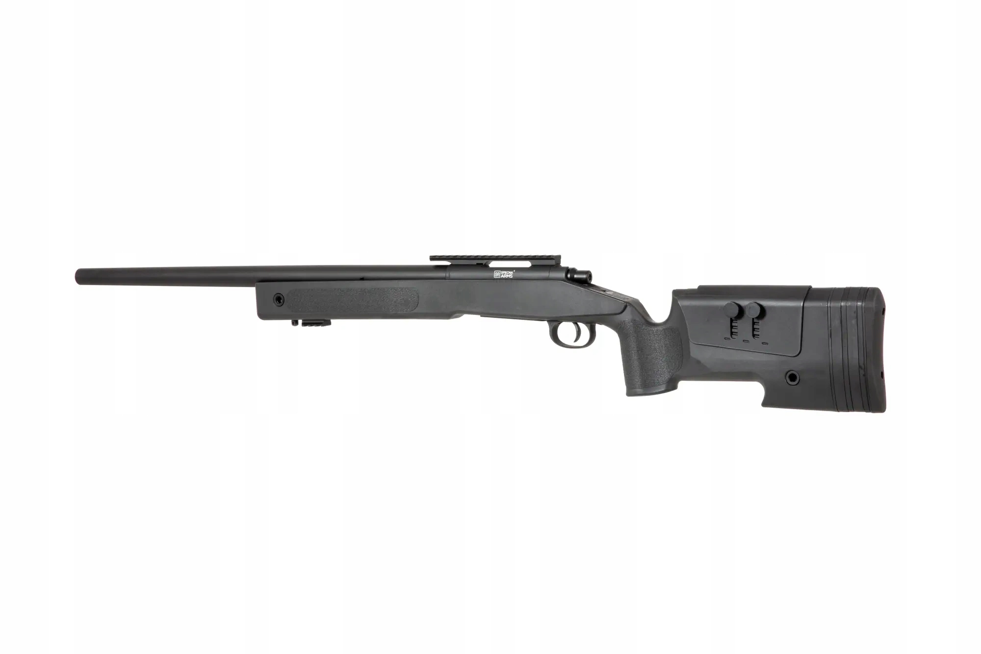 Replikę snajperską Specna Arms wyposażono w prosty i niezawodny mechanizm czterotaktowy, który należy przeładować przed oddaniem każdego strzału. Replika wykonana została z metalu oraz wzmocnionego tworzywa sztucznego. Metalowy jest tu cały zespół lufy zewnętrznej wraz z komorą zamkową, spustem i rączką przeładowania, a także szyny akcesoryjne RIS / Picatinny i wszystkie elementy montażowe, takie jak śruby. Łoże z kolbą, bakę policzkową, stopkę kolby i magazynek wykonano z solidnego tworzywa sztucznego. Sama stopka kolby zakończona została wygodną, gumową nakładką, jej grubość można regulować dzięki kompletowi wymiennych nakładek. W połączeniu z regulowaną baką policzkową daje to możliwość dopasowania kolby do preferencji strzelca.