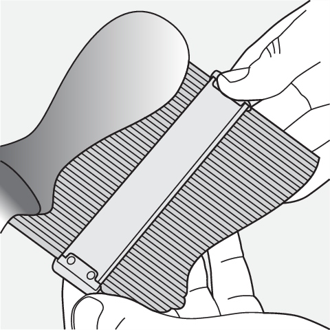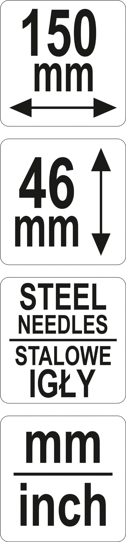 Precyzyjny, stalowy wzornik igiełkowy przeznaczony do przenoszenia kształtów. Szerokość 150 mm. maksymalna głębokość zdejmowanych wymiarów - 46 mm. Na korpusie zaznaczona trwale podziałka milimetrowa i calowa.