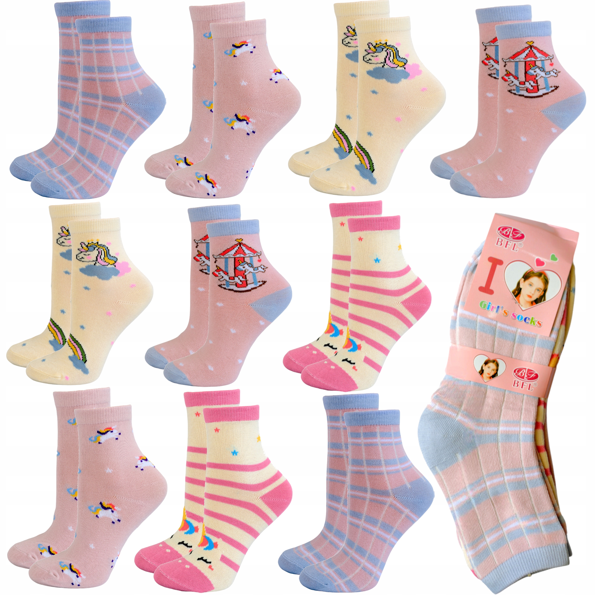 Skarpetki SKARPETY DZIEWCZĘCE dziecięce bawełniane BAWEŁNA 10-pak 35-38