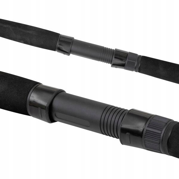 Wysokiej jakości uchwyt kołowrotka mieści duże modele kołowrotków, a wytrzymała rękojeść typu duplon zapewnia bezpieczny chwyt podczas operowania wędką w trakcie holu. Przelotki wędziska z serii Black Passion G2 zostały zaprojektowane pod kątem najtrudniejszych wymagań oraz łowienia z plecionkami. Pozwalają na użycie zarówno kołowrotków ze stałą szpulą jak i multiplikatorów.