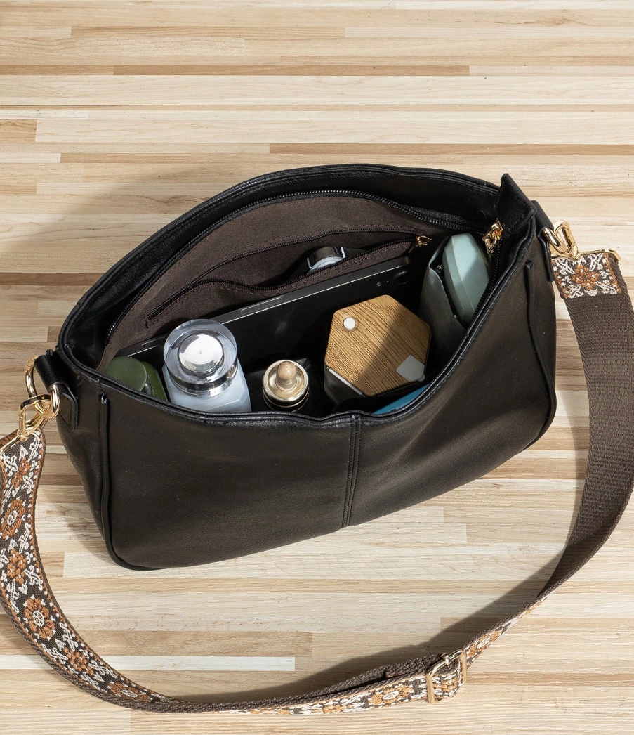 ✔️ 2 otwarte kieszonki wewnątrz – idealne na telefon, klucze lub pomadkę