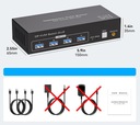 Wielką zaletą tego przełącznika jest możliwość dzielenia czterech urządzeń USB między dwoma komputerami, przy szybkości transferu do 5Gbps. To sprawia, że miejsce pracy staje się bardziej uporządkowane i funkcjonalne. KVM nie wymaga instalacji sterowników – jest to urządzenie typu plug-and-play, co oznacza, że można je łatwo podłączyć i korzystać z niego niemal od razu. Przełączanie źródła sygnału można zrealizować na dwa sposoby: za pomocą przycisku na urządzeniu lub poprzez zdalny kontroler biurkowy. Diody LED wskazują aktywne urządzenie, co eliminuje problem z częstym podłączaniem i odłączaniem urządzeń.
