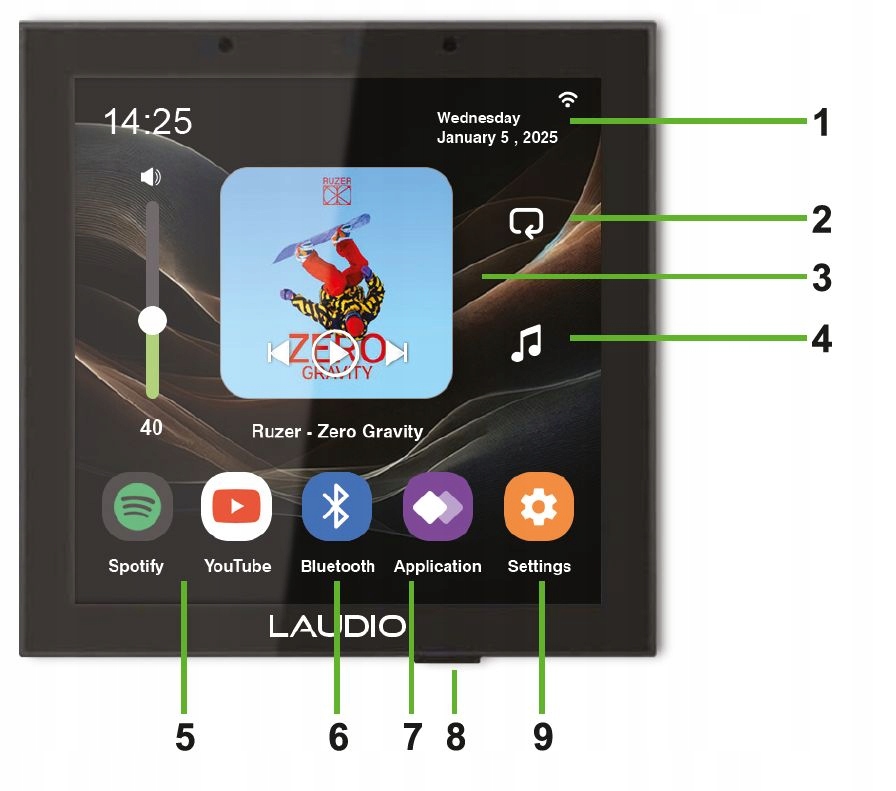 Panel ścienny z jasnym dotykowym podświetlanym wyświetlaczem do montażu podtynkowego z wbudowanym wzmacniaczem stereo klasy D o mocy 2x 40W. Zaletą sterownika z wbudowanym wzmacniaczem jest ogrom funkcjonalności, które to kompaktowe urządzenie oferuje użytkownikowi. Możemy bezpośrednio z urządzenia odtwarzać naszą ulubioną muzykę i cieszyć się dostępem do milionów nagrań z serwisów strumieniowych (m.in. Spotify, Tidal, Deezer), słuchać radia internetowego(m.in. Tune In, Radio Box, MyTuner FM,), odtwarzać pliki muzyczne z z karty sd oraz usb. Cechą wyróżniający model W40WIFI jest również dwukierunkowy bluetooth, który pozwala na parowanie z dowolnym źródłem dźwięku, słuchawkami bezprzewodowymi czy głośnikami Bluetooth. Odtwarzacz dostępny w dwóch wersjach kolorystycznych: białej oraz czarnej.