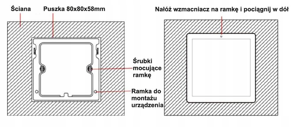 Montaż zestawu audio jest szybki i łatwy dzięki dołączonym do zestawu śrubom montażowym oraz dedykowanej puszce podtynkowej wraz z adapterem dzięki, któremu nie ma konieczności rozłączania poszczególnych elementów urządzenia. Niezbędna głębokość do zabudowy urządzenia to zaledwie 58mm (86x86mm - Szer/Wys). Opcjonalnie istnieje możliwość podłączenia kabla LAN Rj45.