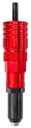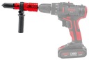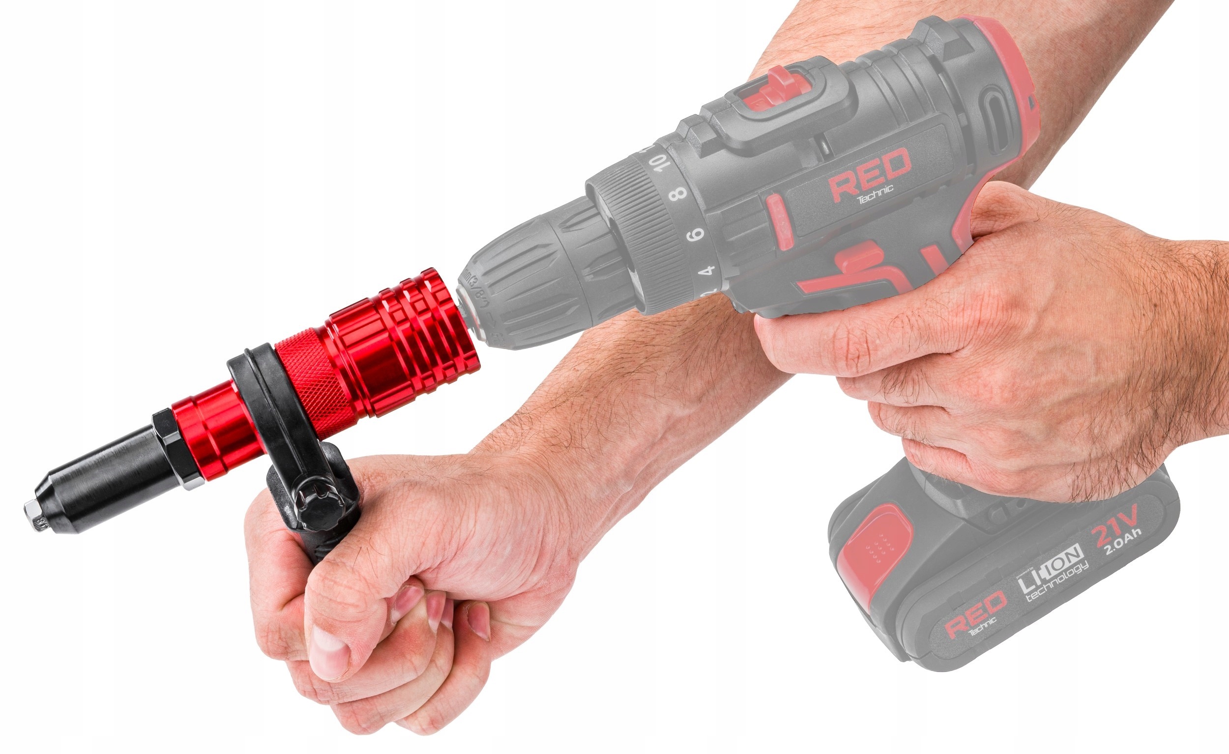 Чтобы использовать инструмент, просто наденьте головку на заклепку, удерживайте устройство рукой (ручка в комплекте) и запустите дрель или шуруповерт. Заклепка должна поместите в нужное место, а остальное сделает инструмент. После завершения клепки остаток можно удалить, изменив направление вращения на левое.