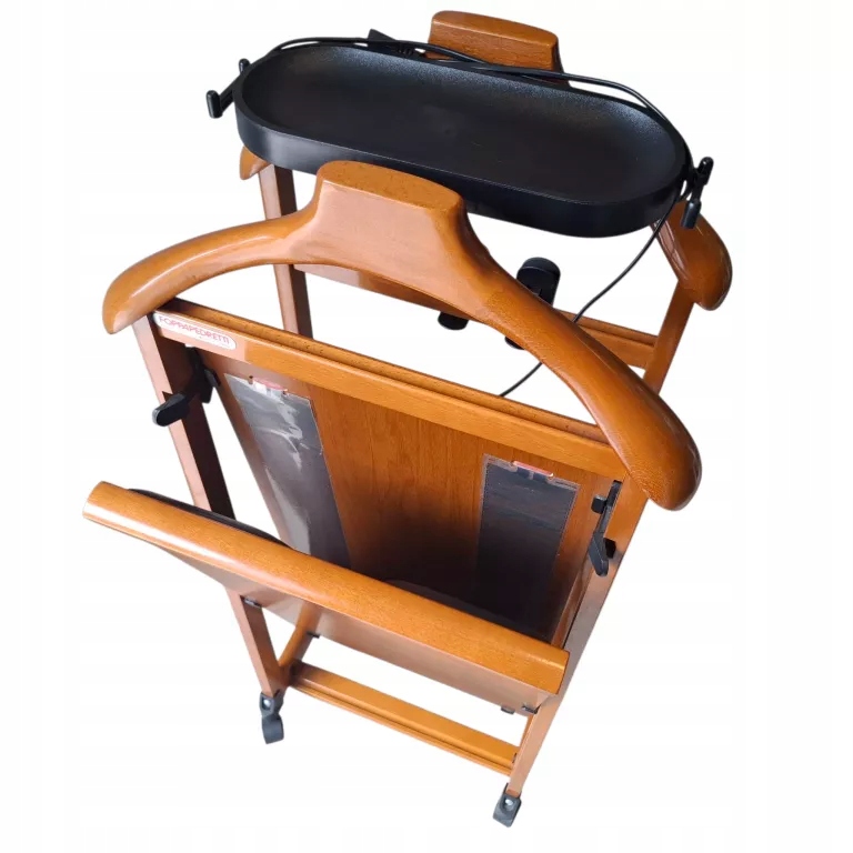 - Masywny drewniany kamerdyner na ubrania z funkcją podgrzewania
