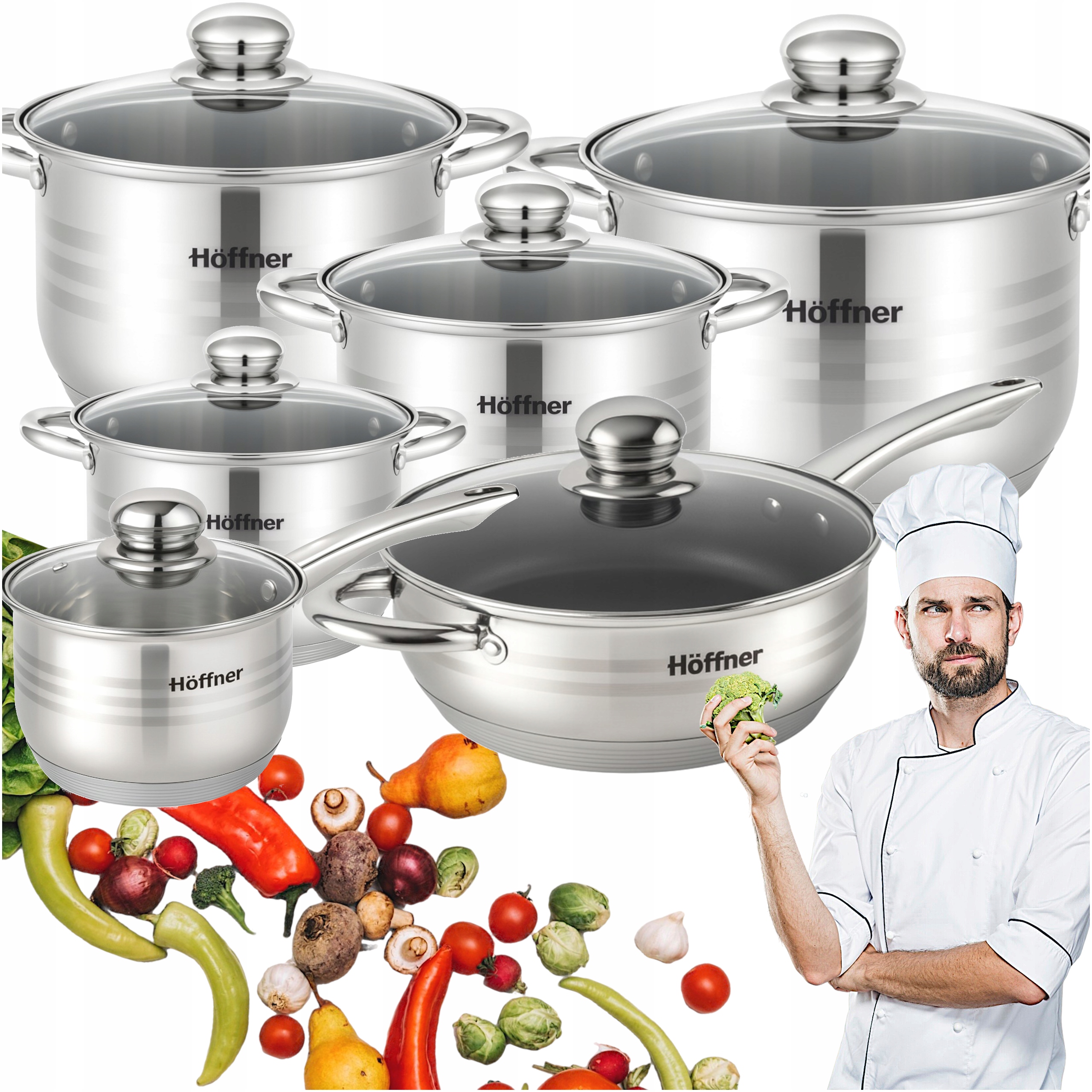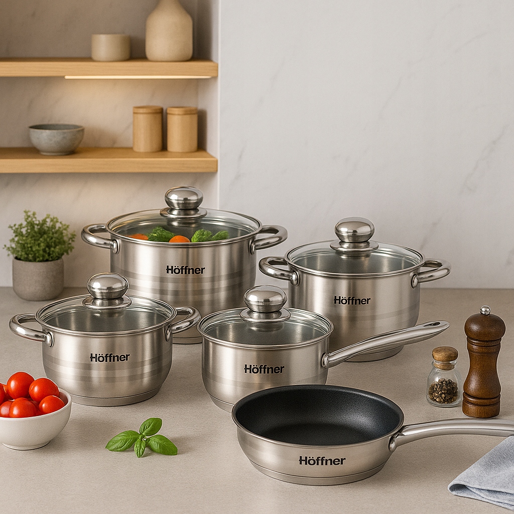 Marka HÖFFNER to połączenie solidności i nowoczesnego designu. Zestaw został stworzony z myślą o codziennym użytkowaniu, jak i wyjątkowych okazjach. Idealny zarówno dla początkujących, jak i wymagających kucharzy.