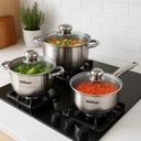 3️⃣Na każdą kuchenkę - Indukcja, gaz, ceramika, halogen – ten komplet jest kompatybilny z każdym typem kuchenki. Gotuj tak, jak chcesz – bez ograniczeń!