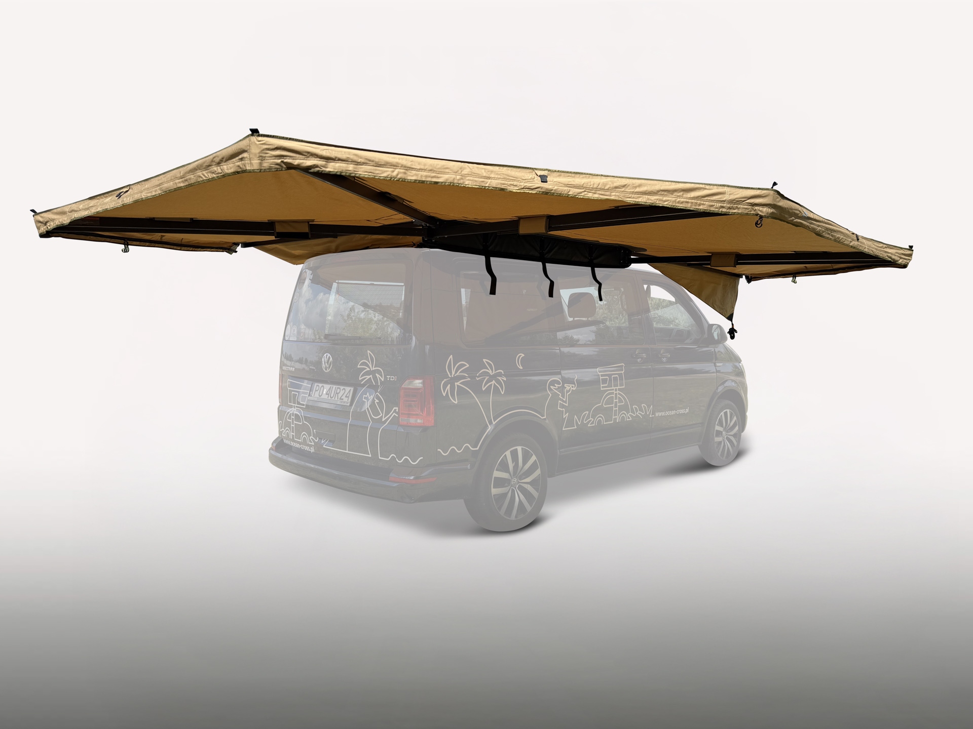 Markiza wolnostojąca Foxwing HD 270° to wysokiej jakości ogromne zadaszenie boczne do twojego samochodu. Markiza Foxwing to idealne rozwiązanie zarówno na długi biwak z noclegiem jak i na krótki postój np. na posiłek, bo jej rozłożenie jest dziecinnie proste.