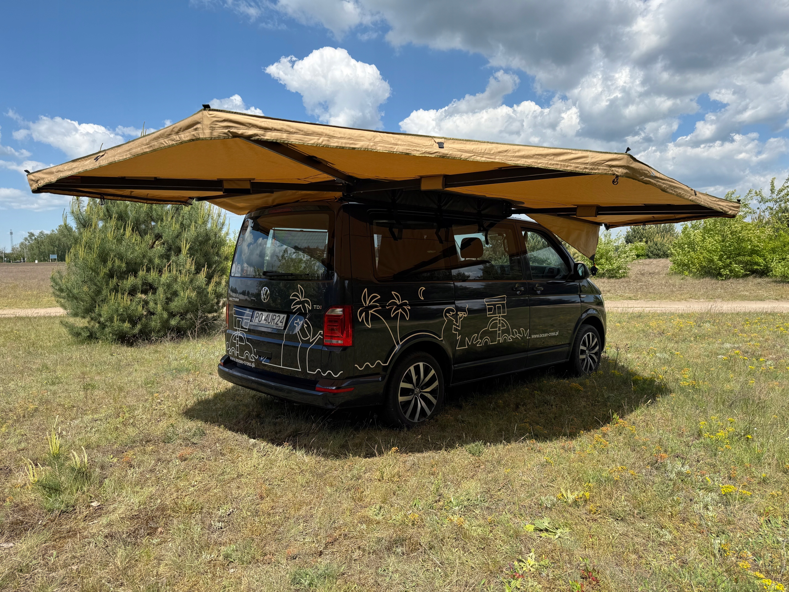 Pod Markizą Foxwing HD powstaje ogromne zacienione miejsce – spokojnie zmieścisz tu kuchnię turystyczną, stół i krzesła , a przestrzeń pod nią jest wymarzonym miejscem do relaksu i odpoczynku. Przestrzeń pod nią to około 12m2. Konstrukcja zadaszenia jest mocna i solidna, a potężne ramiona markizy wykonane ze stopu metali sprawiają, że jest w pełni wolnostojąca. Zalecamy używanie nóżek oraz odciągów jeżeli pogoda jest wietrzna i deszczowa – 3 sztuki nóżek są w zestawie.