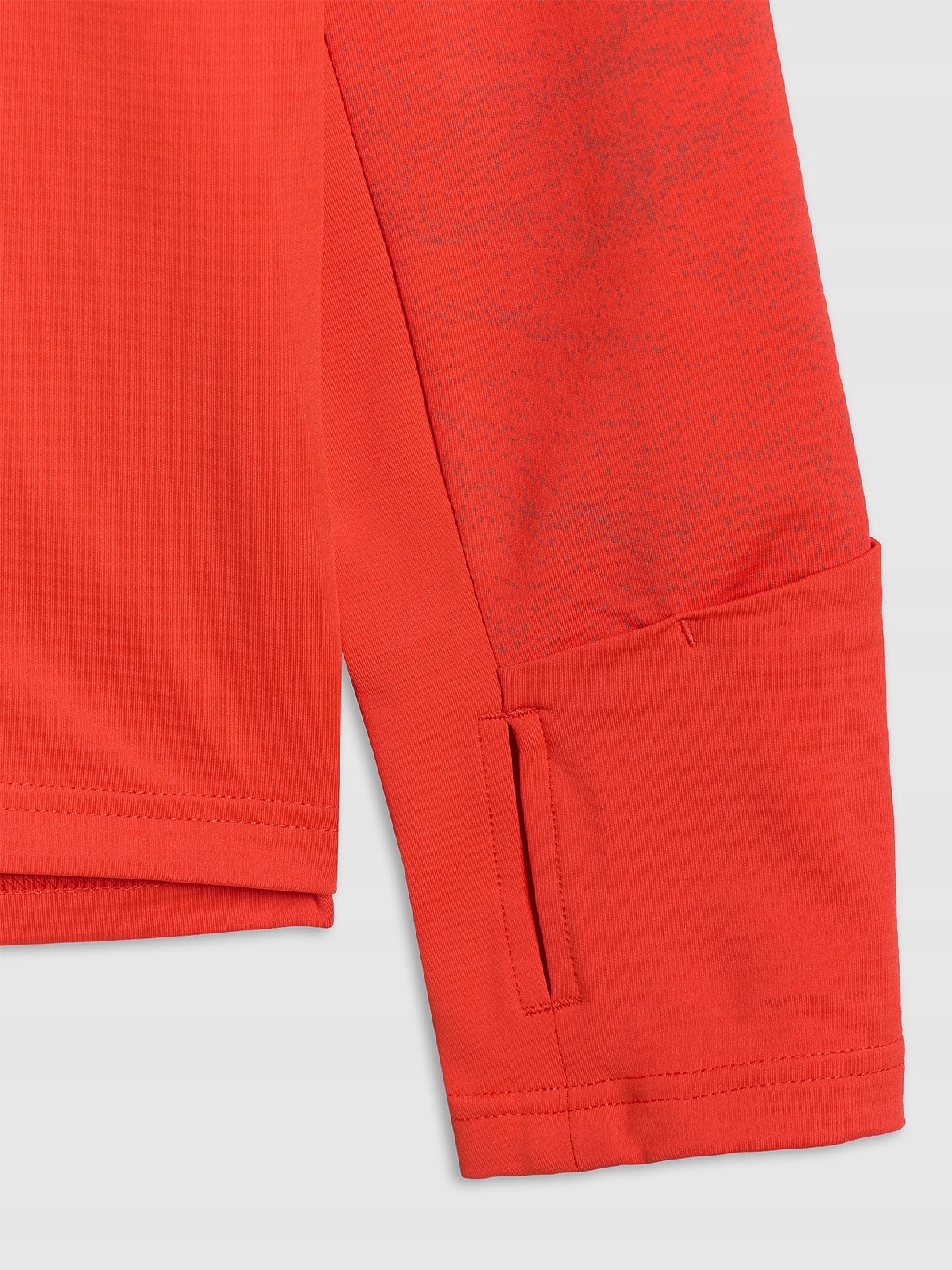 Stójka pod szyją chroni kark przed chłodem, a zamek 1/3 długości ułatwia zakładanie i pozwala regulować temperaturę w trakcie wysiłku. Mankiety z otworem na kciuk osłaniają dłonie, a otwór na zegarek umożliwia szybki dostęp do danych treningowych.