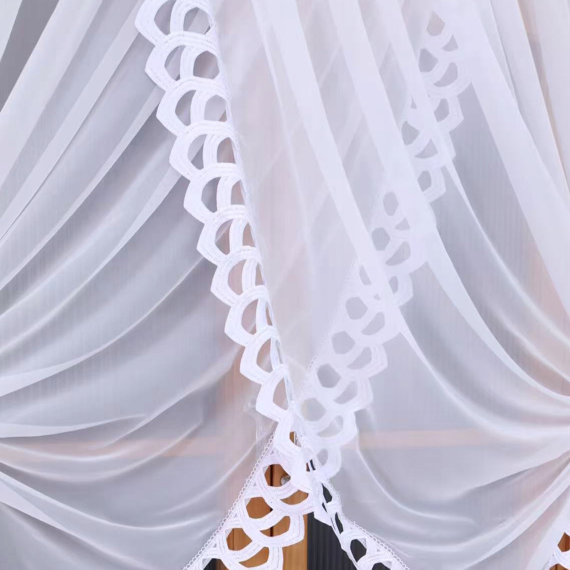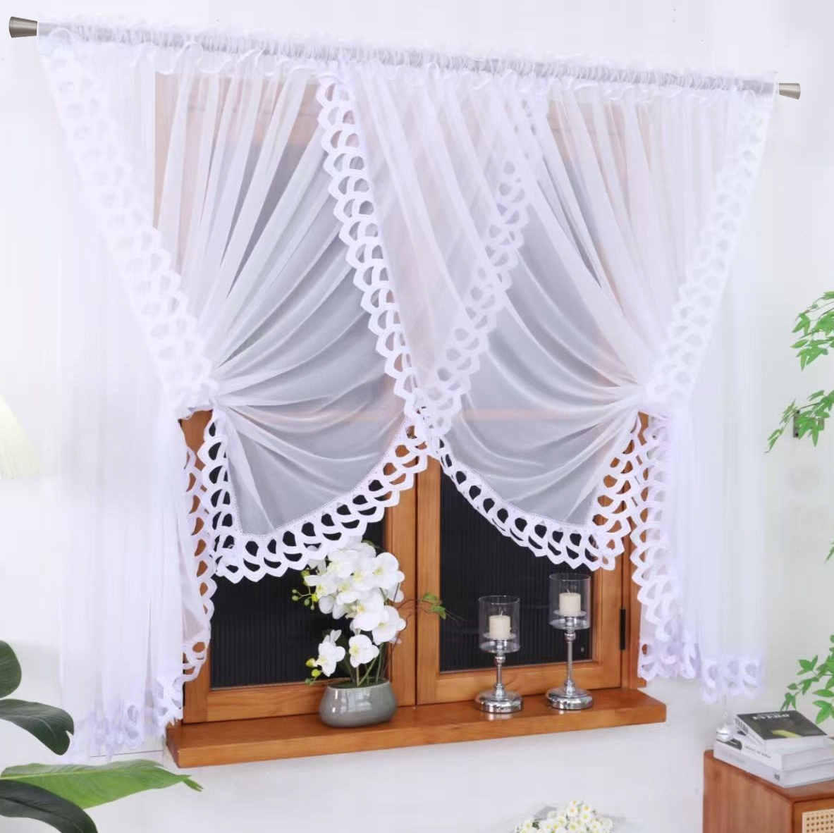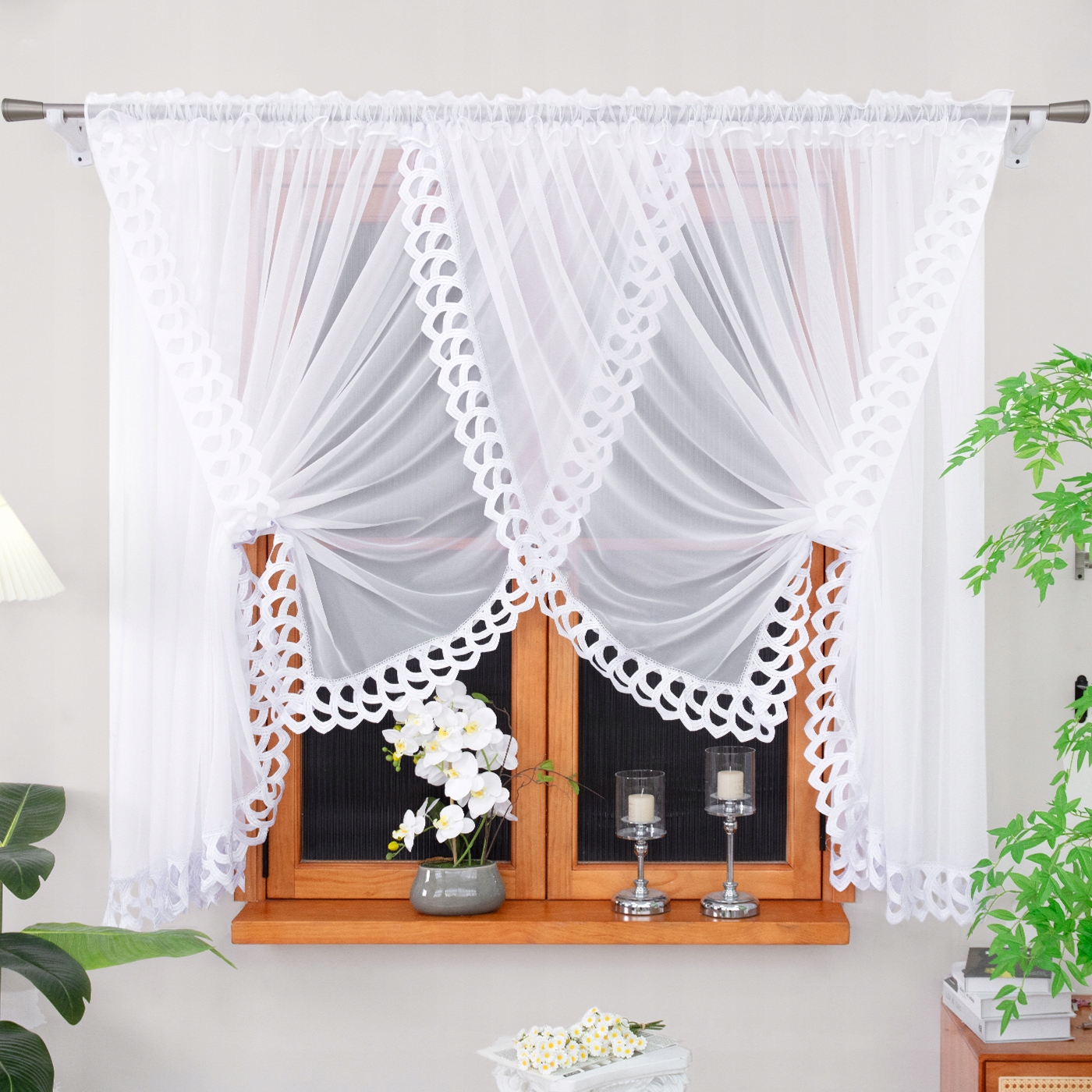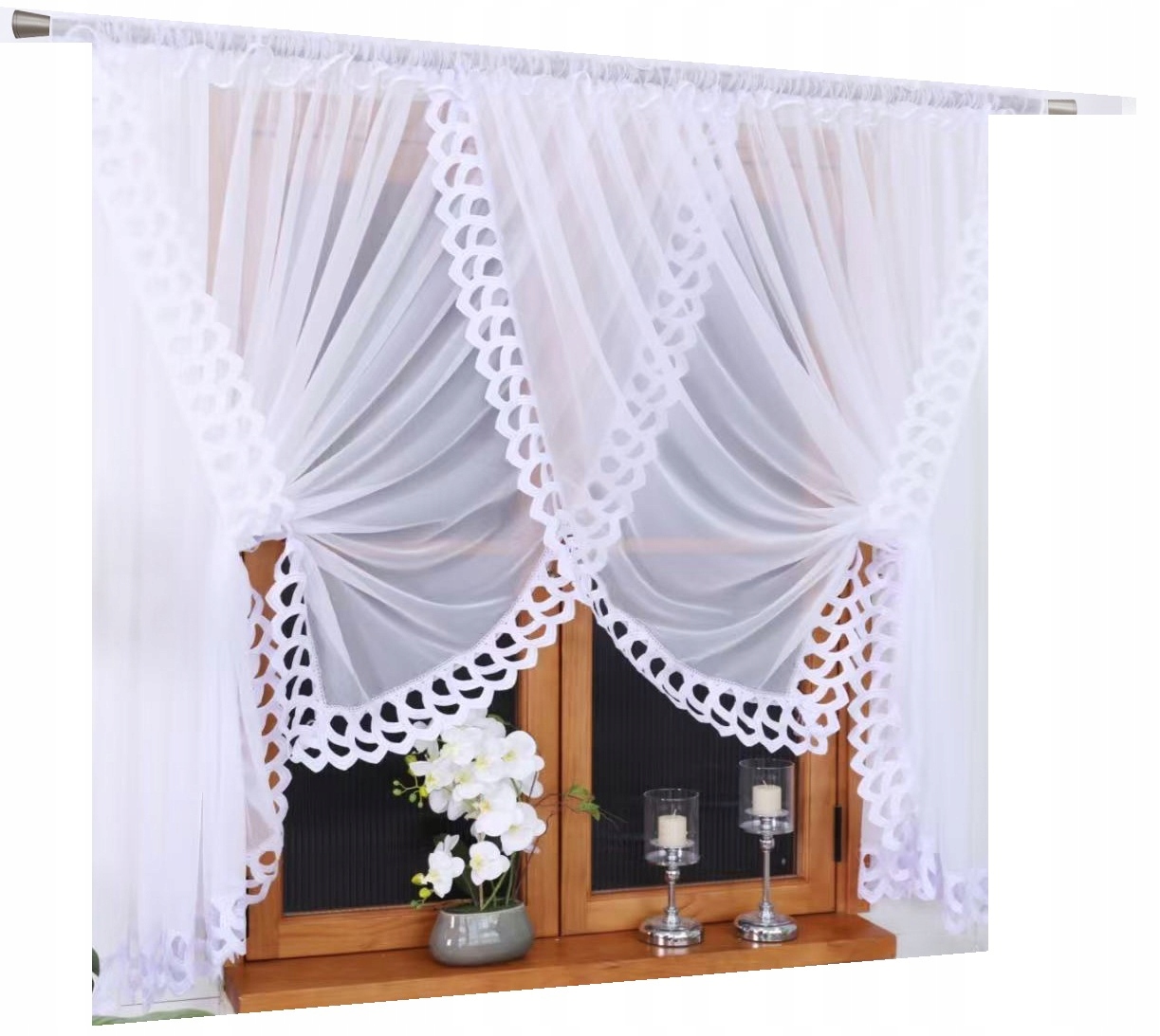 Firana z woalu wysokogatunkowego do kuchni, salonu. Firana jest gotowa na taśmie. Wykończona gipiurą. Nasze firany charakteryzują się wysoką jakością wykonania oraz eleganckim wyglądem. Woal, z którego wykonane są nasze firany, jest również lekki i delikatny, co sprawia, że świetnie prezentuje się zarówno na oknach w salonie, sypialni czy jadalni.
