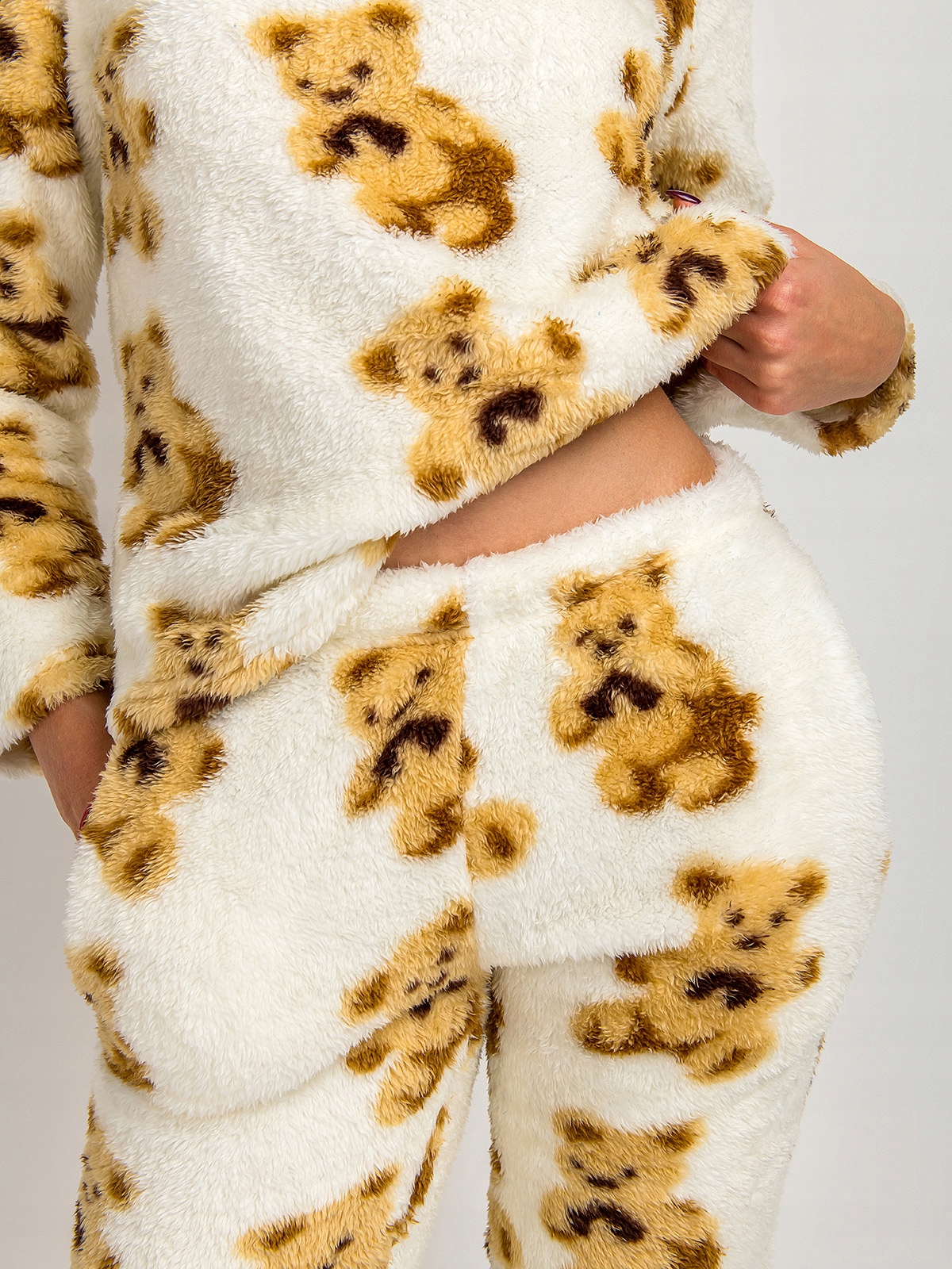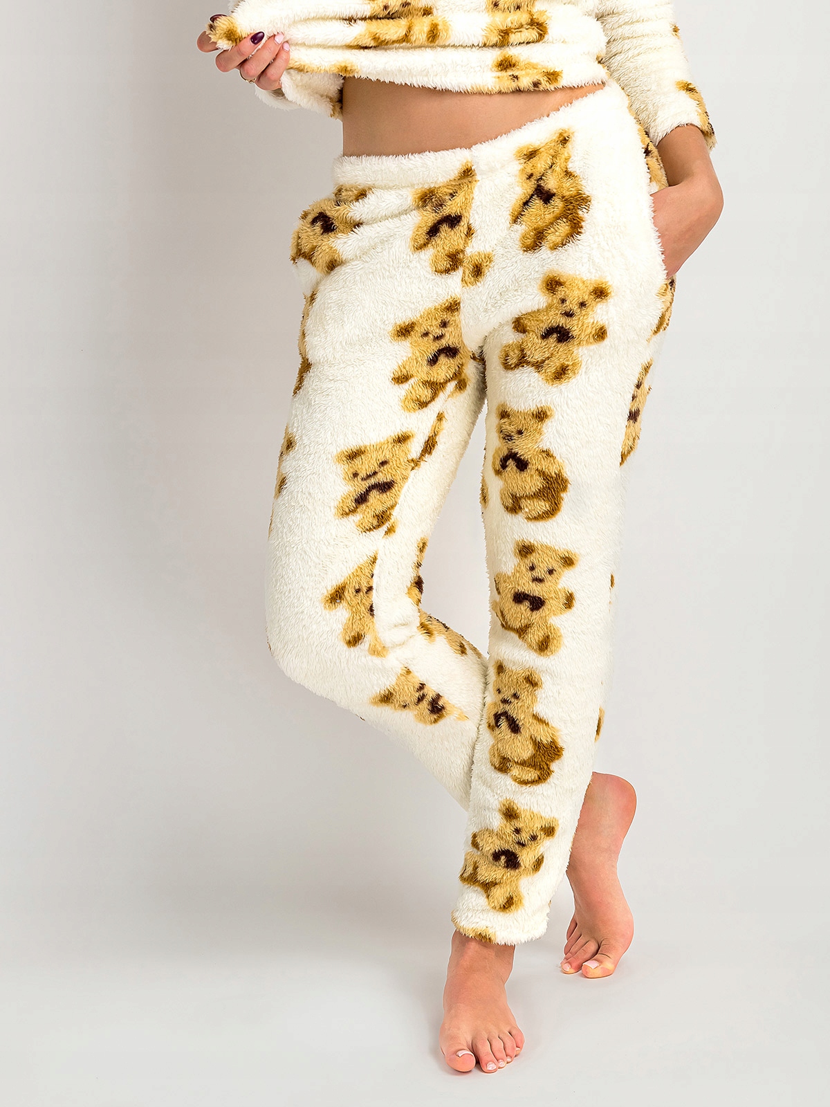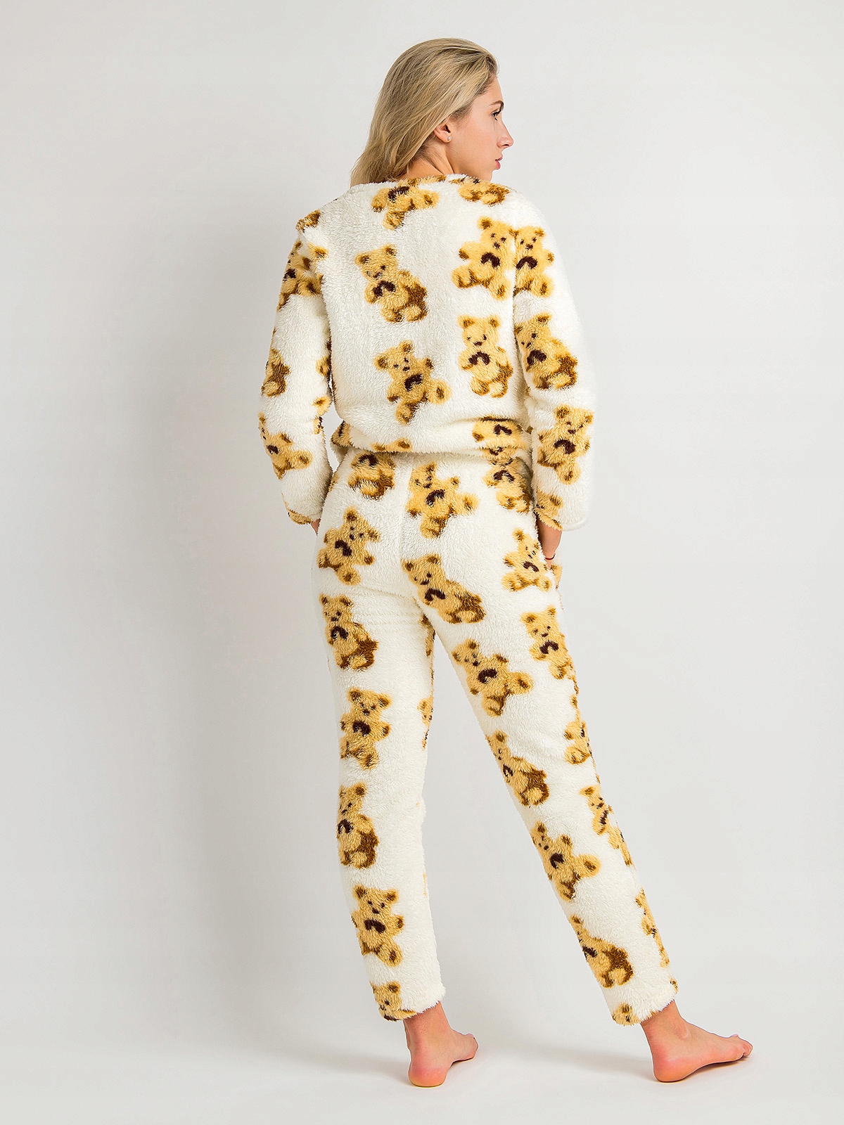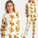 Piżama Damska Dwuczęściowa Długa Miękka Ciepła w Misie Beżowa XL