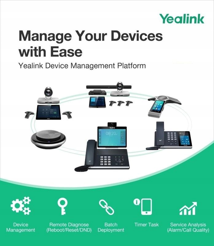Razem z produktami Yealink umożliwiamy dostęp do platformy zarządzania telefonami, która pozwala na zbiorczą konfigurację aparatów, zdalną diagnostykę, statystyki oraz alarmy w czasie rzeczywistym (np. wylogowanie kont SIP).