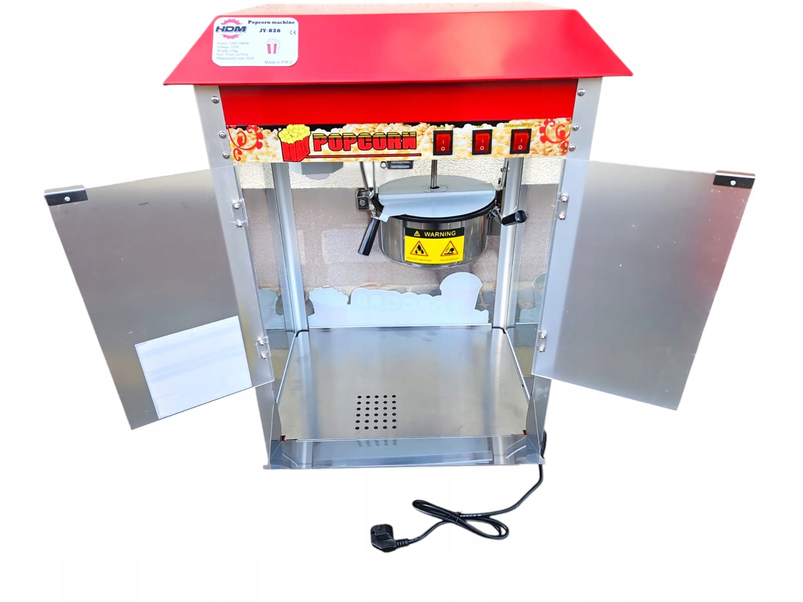 Dzięki maszynie do popcornu Royal Catering wyprodukujesz do 6 kg lub 15 litrów popcornu na godzinę. Zadbają o to mocny silnik o mocy 1400 W, automatyczny termostat i najwyższej klasy element grzejny, który szybko osiągnie temperaturę roboczą. Pierwszą porcję przekąski podasz już po 2 minutach od uruchomienia urządzenia do popcornu. Po wysypaniu kukurydzy z garnka pozostanie ona świeża i chrupiąca przez długi czas dzięki funkcji utrzymywania ciepła. Za sprawą zintegrowanego oświetlenia i jasnoczerwonej obudowy zaprezentujesz swój produkt w efektowny i atrakcyjny sposób.