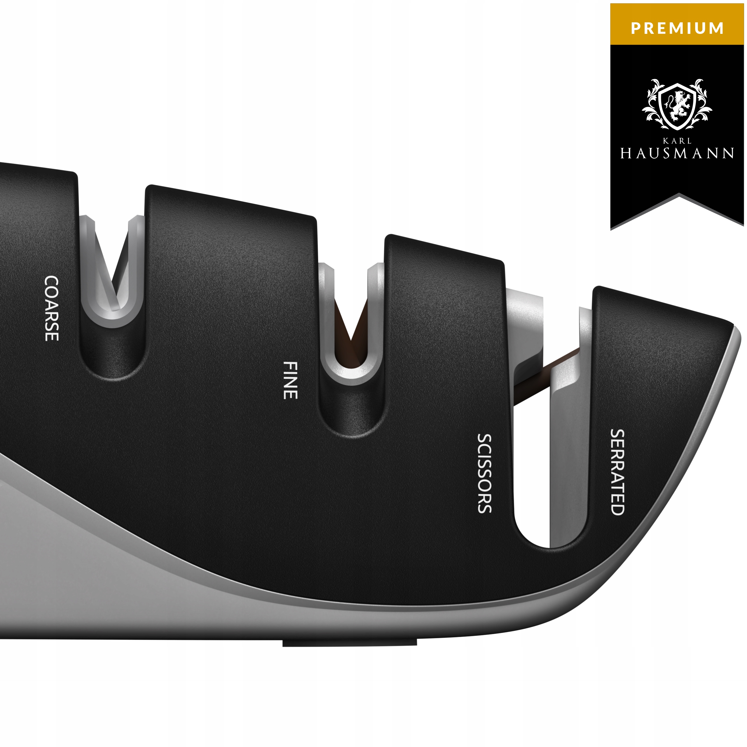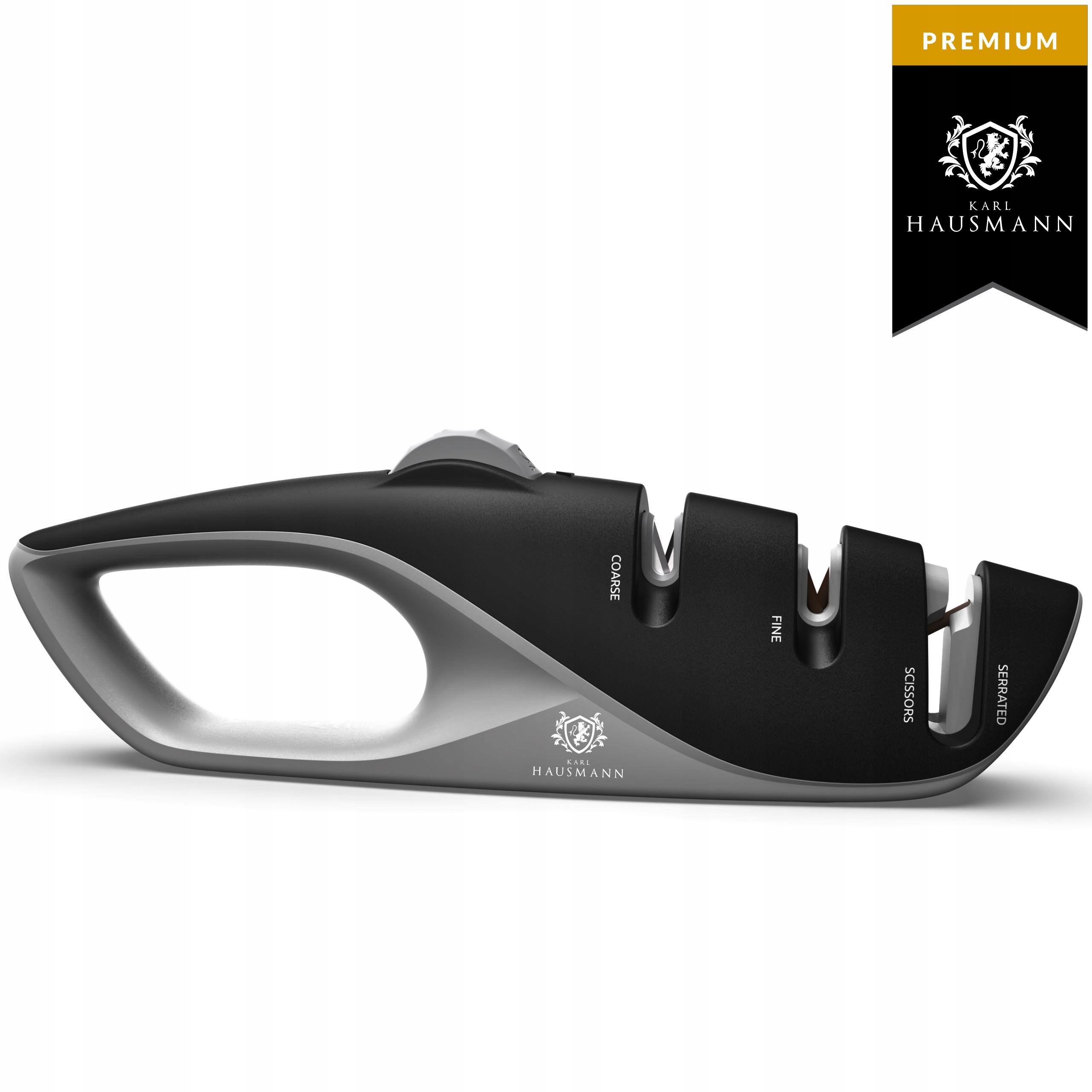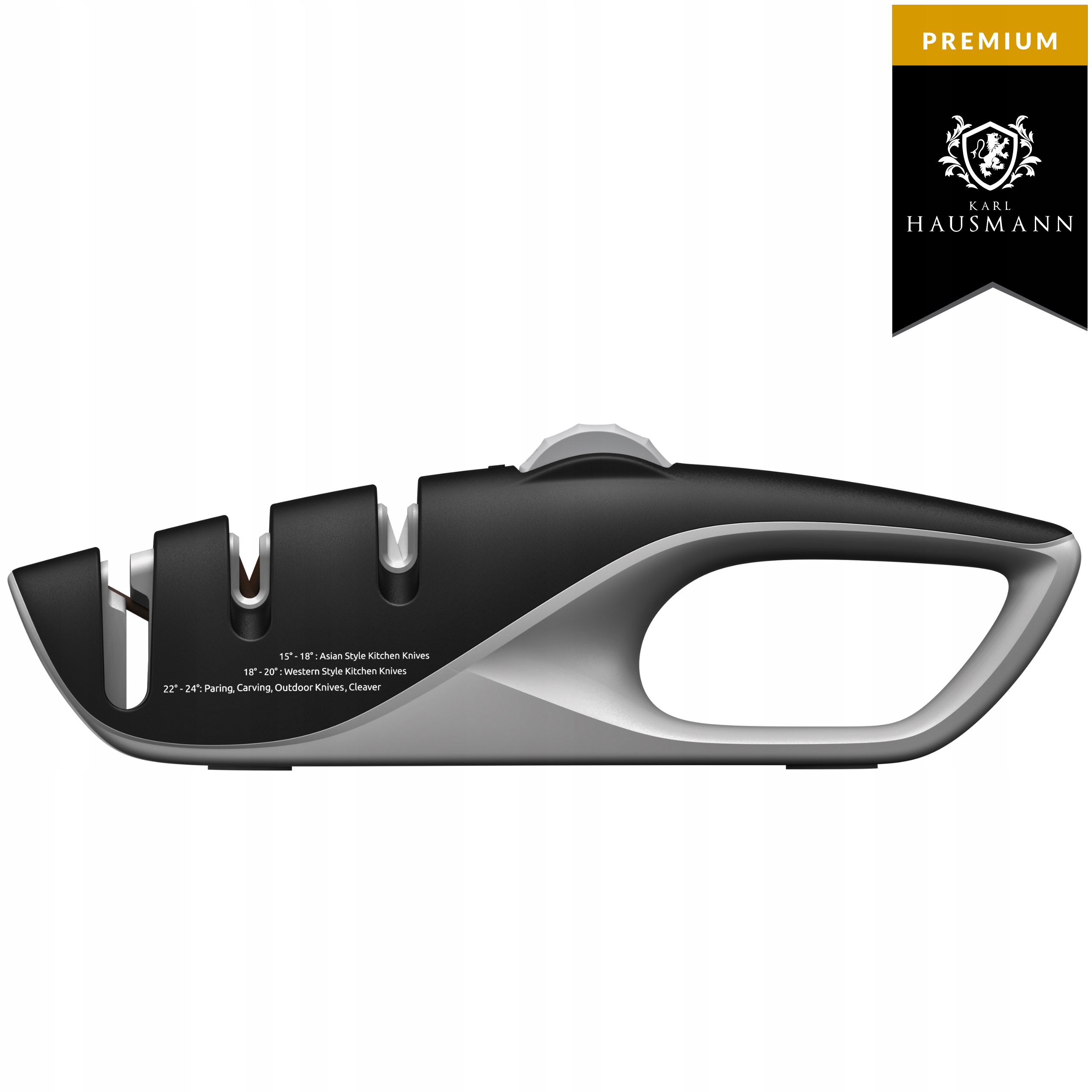 Dzięki innowacyjnej regulacji kąta ostrzenia (15° - 24°), ostrzałka Karl Hausmann jest wszechstronna i nadaje się do różnego rodzaju noży: