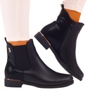 Damskie, wsuwane botki w kolorze czarnym. W środku ocieplane miękkim futerkiem, co sprawia wygodne użytkowanie, idealne na zimę❗ Posiadają zapięcie na suwak, co umożliwia łatwe zakładanie. ❄ Stabilna, gruba podeszwa dobrze amortyzuje stopę oraz chroni przed zimnem.❄ Wykonane z dobrych jakościowo materiałów. Prosty fason sprawia, że pasują do wielu stylizacji.