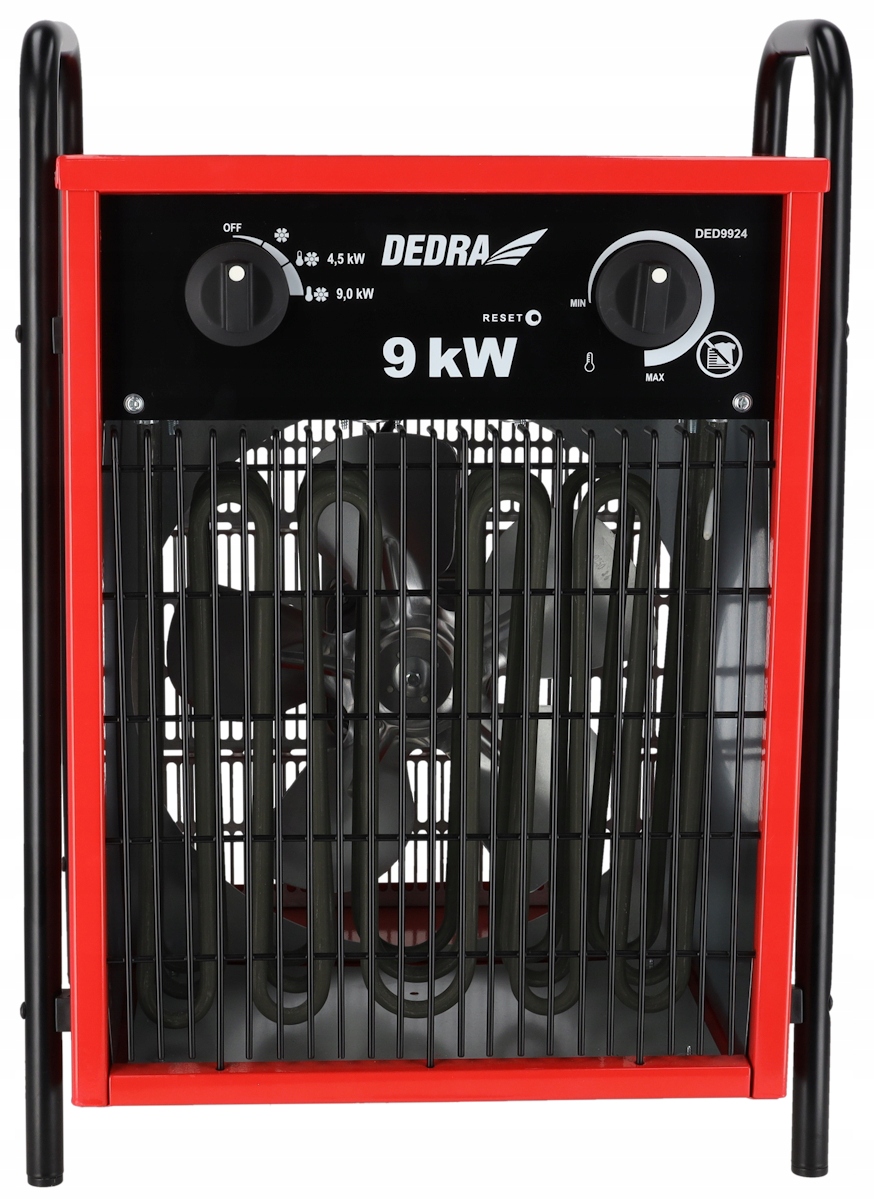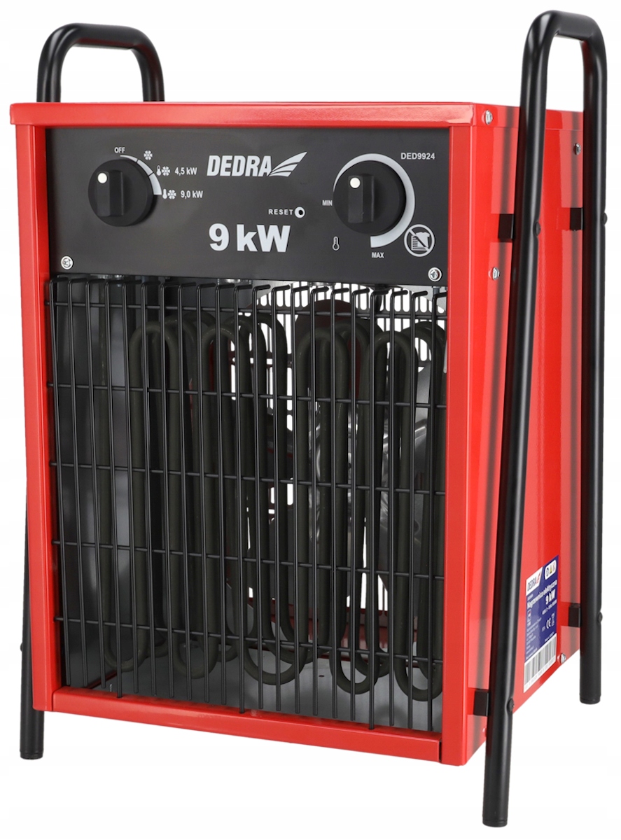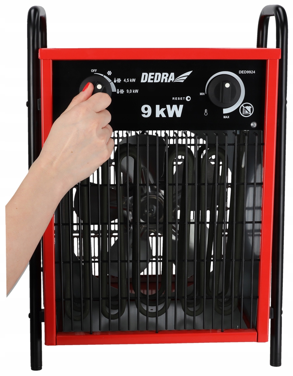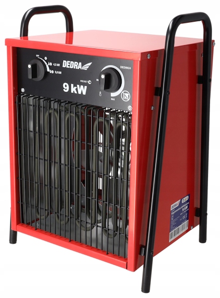 Nagrzewnica DEDRA DED9924 została wyposażona w złącze 400V (3-fazowe), co pozwala na bezpieczne i wydajne zasilanie urządzenia o mocy aż 9kW.