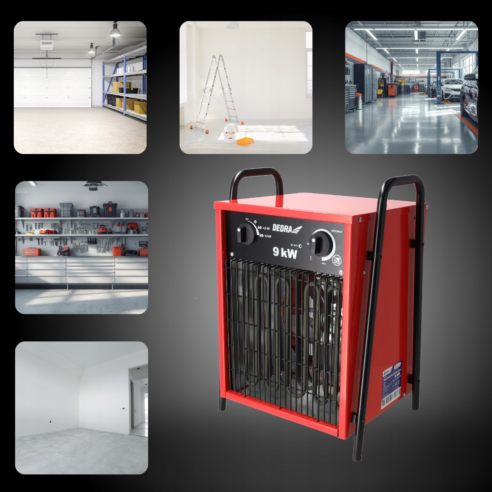 DED9924 nadaje się do ogrzewania garaży, warsztatów, hal, piwnic, magazynów i innych pomieszczeń użytkowych o powierzchni do około 90 m².