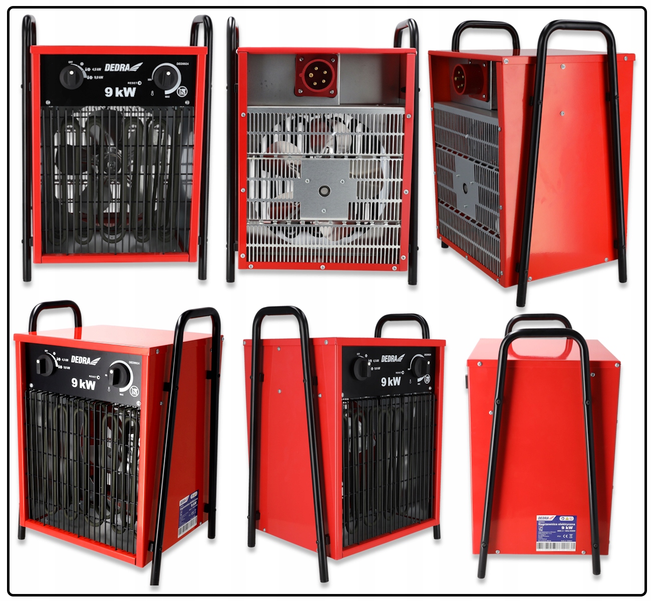 WYSOKA MOC | MOC 4500 - 9000 W| ZŁĄCZE 400V 3 FAZOWE | 3 POZIOMY MOCY | PRZEPŁYW POWIETRZA 1198m³/h | PŁYNNA REGULACJA | TERMOSTAT | OCHRONA IP24 | PROFESJONALNA | SZYBKI NAGRZEW | METALOWA OBUDOWA | WENTYLATOR | POWIERZCHNIA GRZANIA 90 m²|