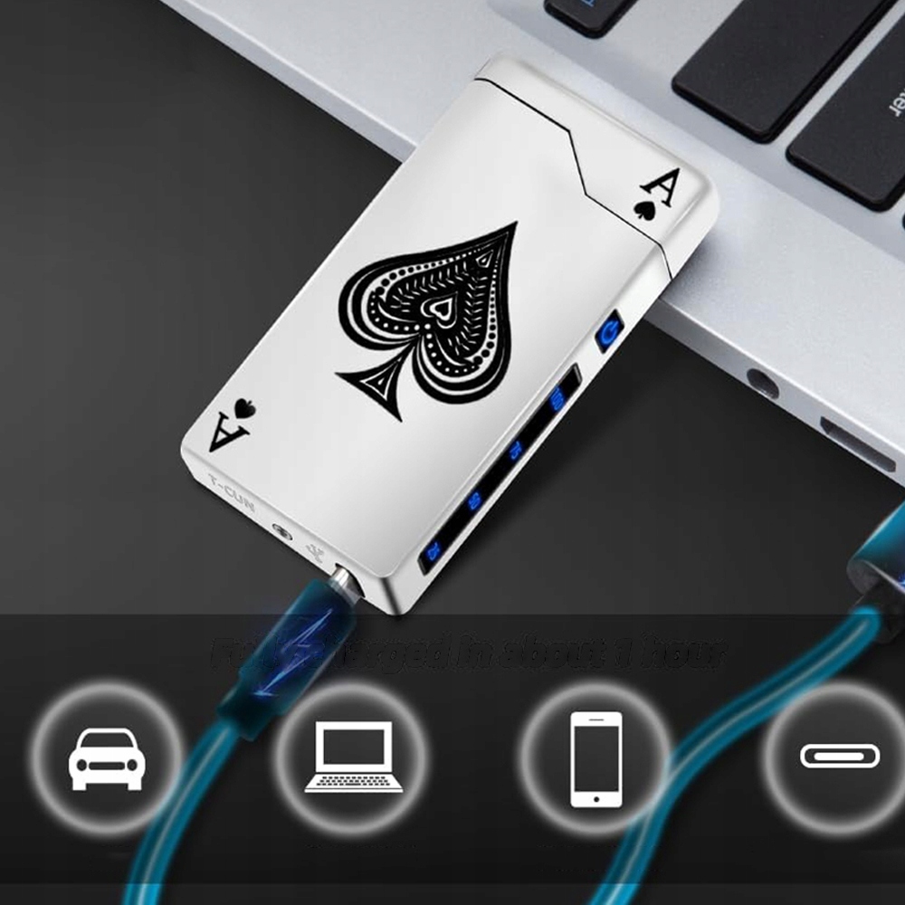 Stylowa, srebrna zapalniczka Ace of Spades jest stylowa i atrakcyjna. Ulepszona konstrukcja głowicy zapłonowej, pochylonej o 75°, ułatwia jej użycie, gdy trzeba coś zapalić. Inteligentny układ zapobiega przegrzaniu, a zapalniczka łukowa posiada 7-sekundowe automatyczne wyłączenie.