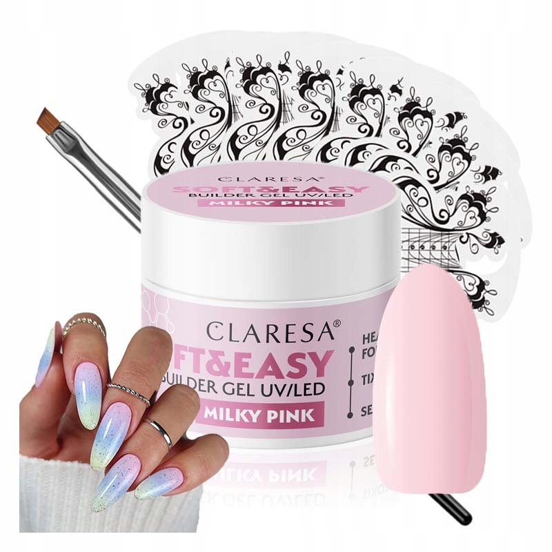 Innowacyjna formuła żelu o wyjątkowej strukturze i gęstości sprawia, że świetnie się poziomuje, przez co wybacza błędy nawet niezbyt doświadczonego użytkownika, szybką pracę ułatwia również zapobiegająca spływaniu na skórki tixotropia (pamięć cieczy). Stylizacja przy użyciu SOFT&EASY nie wymaga piłowania ani Topu – wystarczy przetrzeć warstwę dyspersyjną Cleanerem i intensywnie błyszczące paznokcie są gotowe!