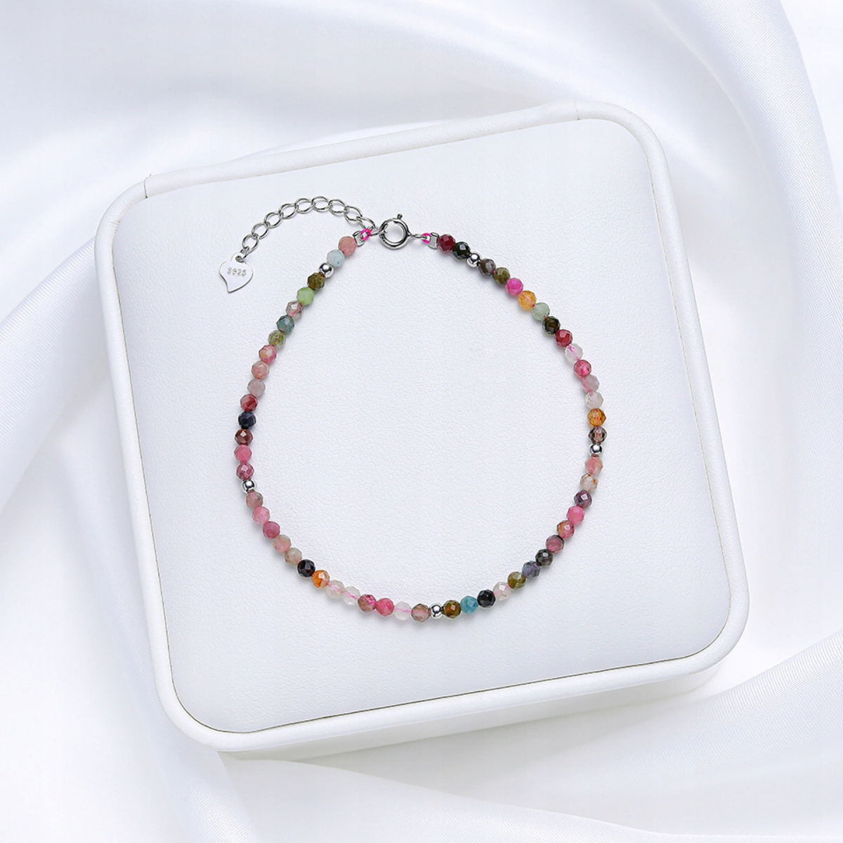 Bransoletka turmalin kolorowy szczęścia wzmacnia oraz wspomaga naszą odporność psychiczną i fizyczną. Kamień ochronny, który działa jak naturalny oczyszczacz powietrza. Redukuje negatywne wpływy elektromagnetyczne pochodzące od urządzeń elektronicznych. Dzięki temu bransoletka może pomóc w łagodzeniu napięcia, zmęczenia, stresu, a także poprawić ogólną jakość snu.