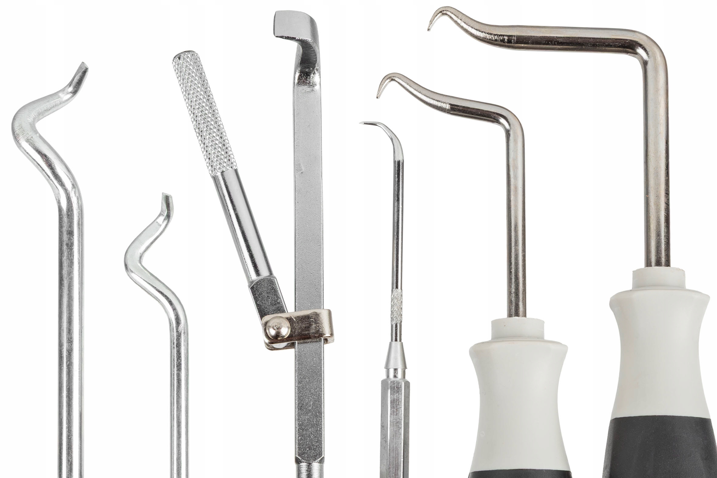 ✔️ 6 specjalistycznych haczyków: każdy z narzędzi ma inny kształt i długość, co pozwala dopasować je do konkretnego rodzaju uszczelki, oringu lub simeringu – zarówno przy demontażu, jak i przy manipulowaniu elementami.