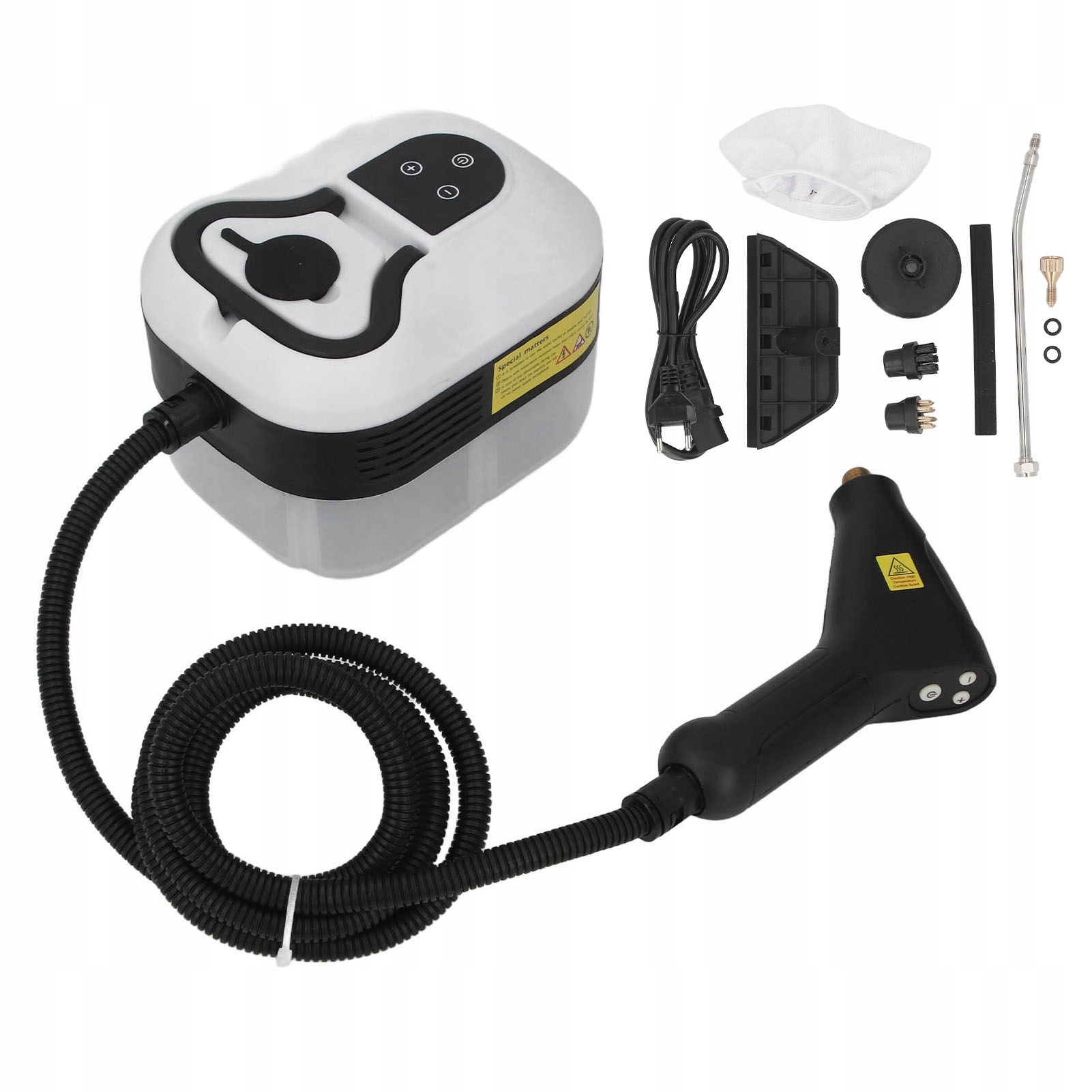 2. Z dugim przewodem zasilającym: Przenośna ręczna środka do czyszczenia pary jest wyposażona w 2 m rurkę z pistoletem natryskowym i o dugości 1,5 m, aby uatwić użycie wewnątrz i na zewnątrz