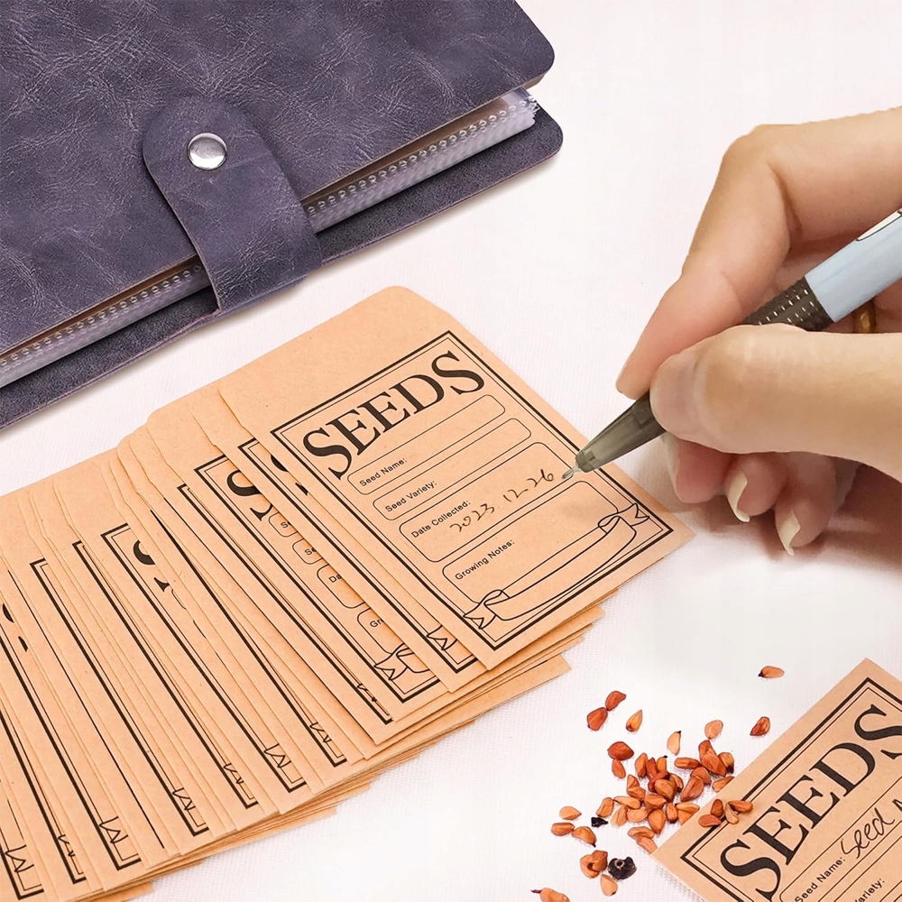 Użyj tych woreczków na nasiona do przechowywania nasion warzyw i roślin. Wypełnij koperty informacjami o nasionach i umieść je w segregatorze. Koperty na nasiona pomogą Ci szybko znaleźć potrzebne nasiona.
