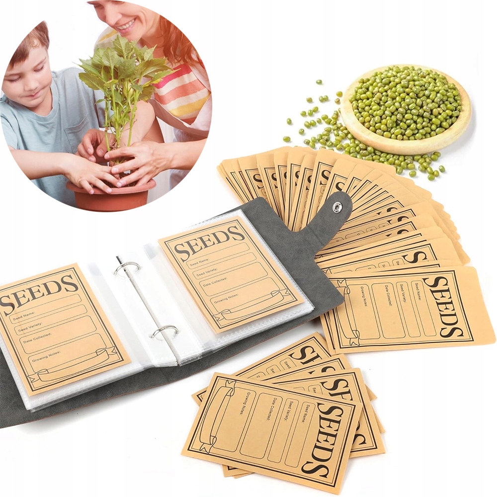 🌟🌟 segregator z 25 stronami i 50 kopertami - idealny do organizacji nasion, zdjęć, pocztówek i naklejek