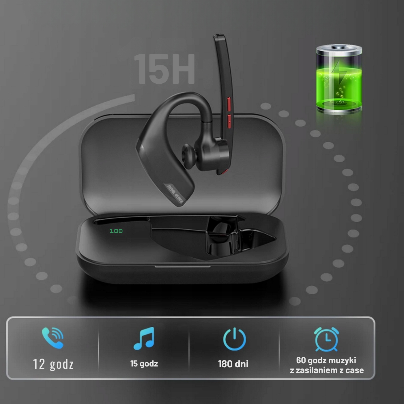 Słuchawka pozwala na około 12 h rozmów lub 15 h odtwarzania muzyki. W trybie czuwania pozostaje przez około 180 dni. Wraz z etui (500 mAh) czas działania M51 wynosi 60 h. Ponadto zestaw możesz ładować zarówno za pomocą kabla USB-C, jak i etui ładującego.