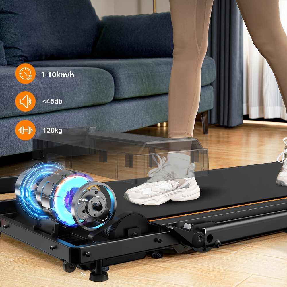 ➡ SKŁADANA BIEŻNIA ELEKTRYCZNA KT-S1, przeznaczona do użytku domowego, może być umieszczona pod łóżkiem lub stołem, ma prędkość 1-10 km/h, moc wyjściową 0.75-2.5 KM, maksymalne obciążenie 120 kg, oraz wyświetlacz LED.