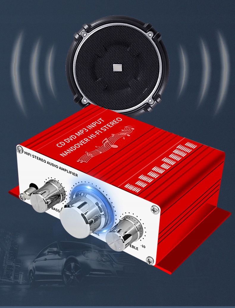 Mini Digital Car Auto Wzmacniacz HiFi Audio Music CD DVD MP3 FM Player (czerwony)