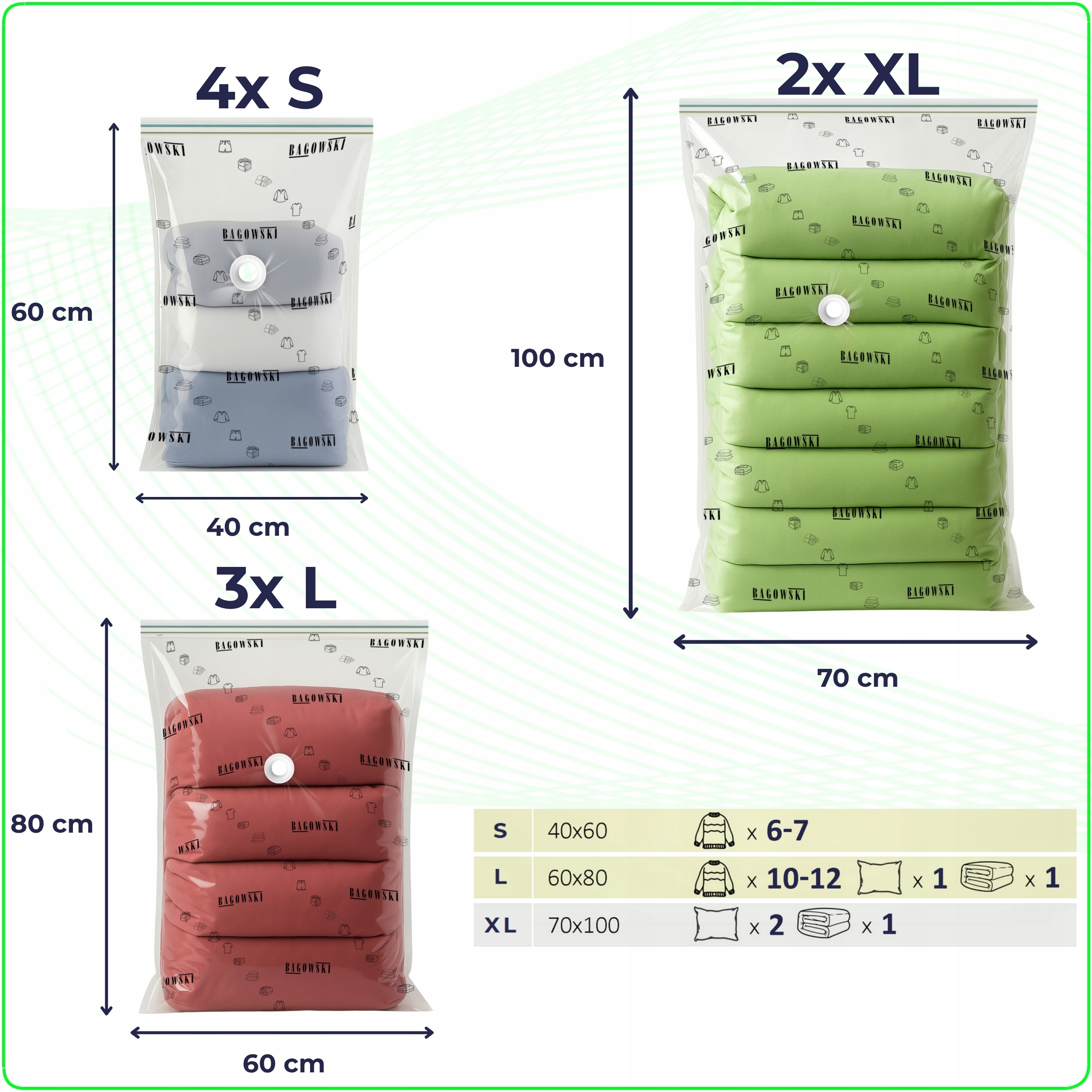 ▶️ Do skompresowania worków potrzebować będziesz zwykłego odkurzacza domowego lub dedykowanej pompki do worków próżniowych - możesz ją zakupić razem z tym zestawem w sekcji "zestawy" nad opisem tej oferty.