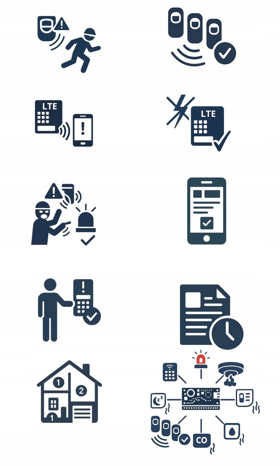 ✅ Rozbudowana pamięć zdarzeń i logów – pełna historia alarmów, uzbrojeń, awarii i aktywności użytkowników