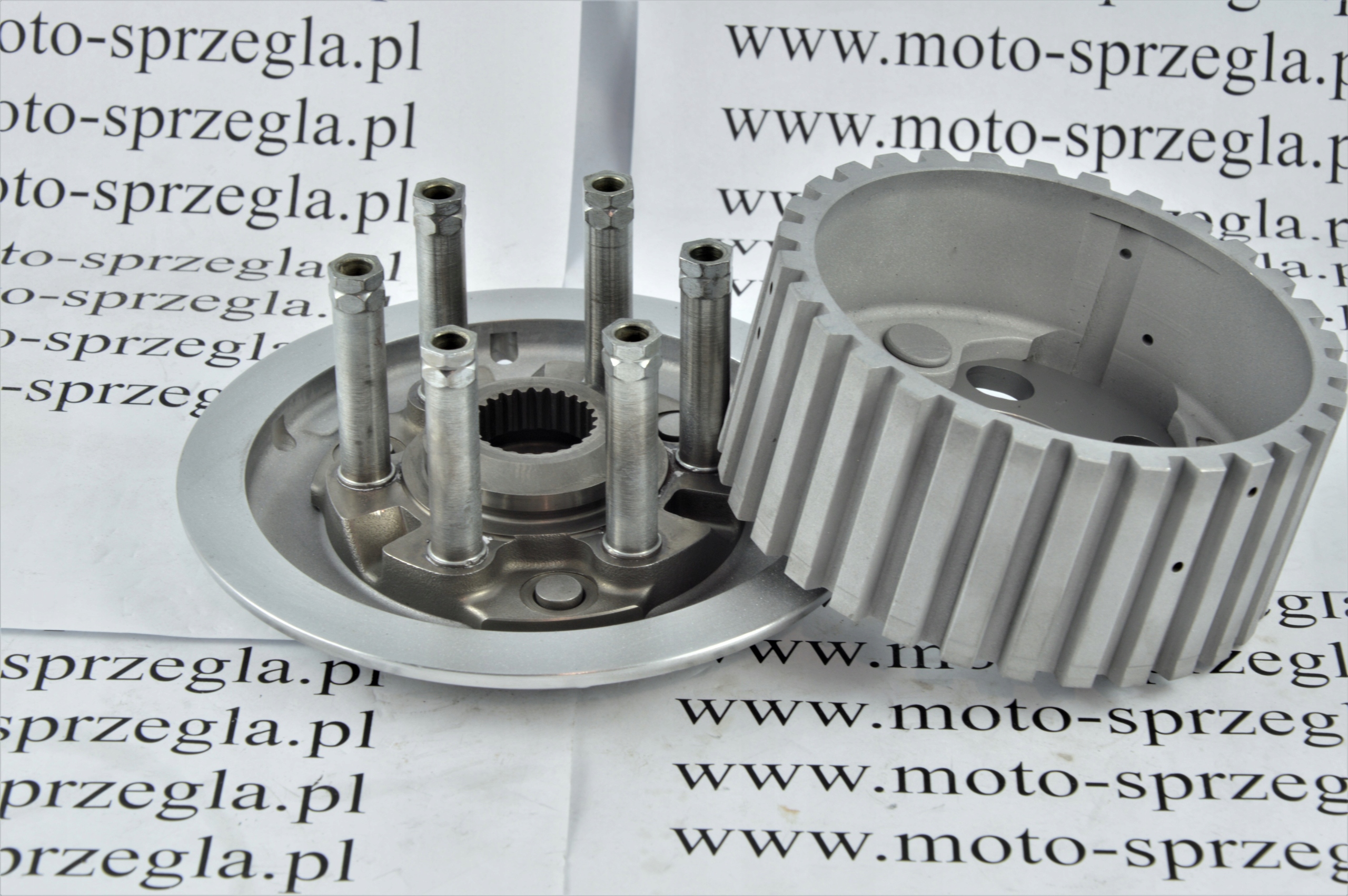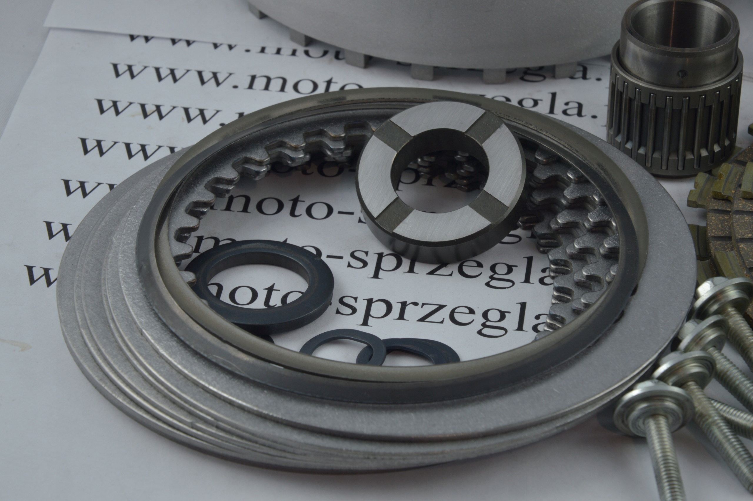Po wstępnej ocenie wszystkich elementów pod kątem nadmiernego zużycia kosz jest centrowany w kilku etapach. Kolejnym krokiem jest wykonanie nowego, ulepszonego ułożyskowania wewnętrznego kosza poprzez inny materiał niż odlewane aluminium, . Sprężyny zostają zmienione na dłuższe , które nie pozwalają przemieszczać im się w żadną stronę. Jedyne co zostaję oryginalne to zakres pracy sprężyny i jej twardość . W koszu sprzęgłowym wiele sprężyn ma inne twardości . Dobieramy je odpowiednio do danego kosza sprzęgłowego w którym występują minimum 3 twardości . Jedyne co zostaję oryginalne to zakres pracy sprężyny. Oczywiście ta zasada nie tyczy się wszystkich motocykli ponieważ charakterystyka i praca silników są różne . Wiec w pewnych modelach luz na Tłumikach drgań czyli sprężynie musi występować i jest on uzależniony od charakterystyki danego silnika .Cześć aluminiowa poddawana jest uzupełnieniu materiału, rowki tarcz sprzęgłowych oraz uszkodzenia pod tłumikami drgań . Sprzęgło zostaje idealnie spasowane
