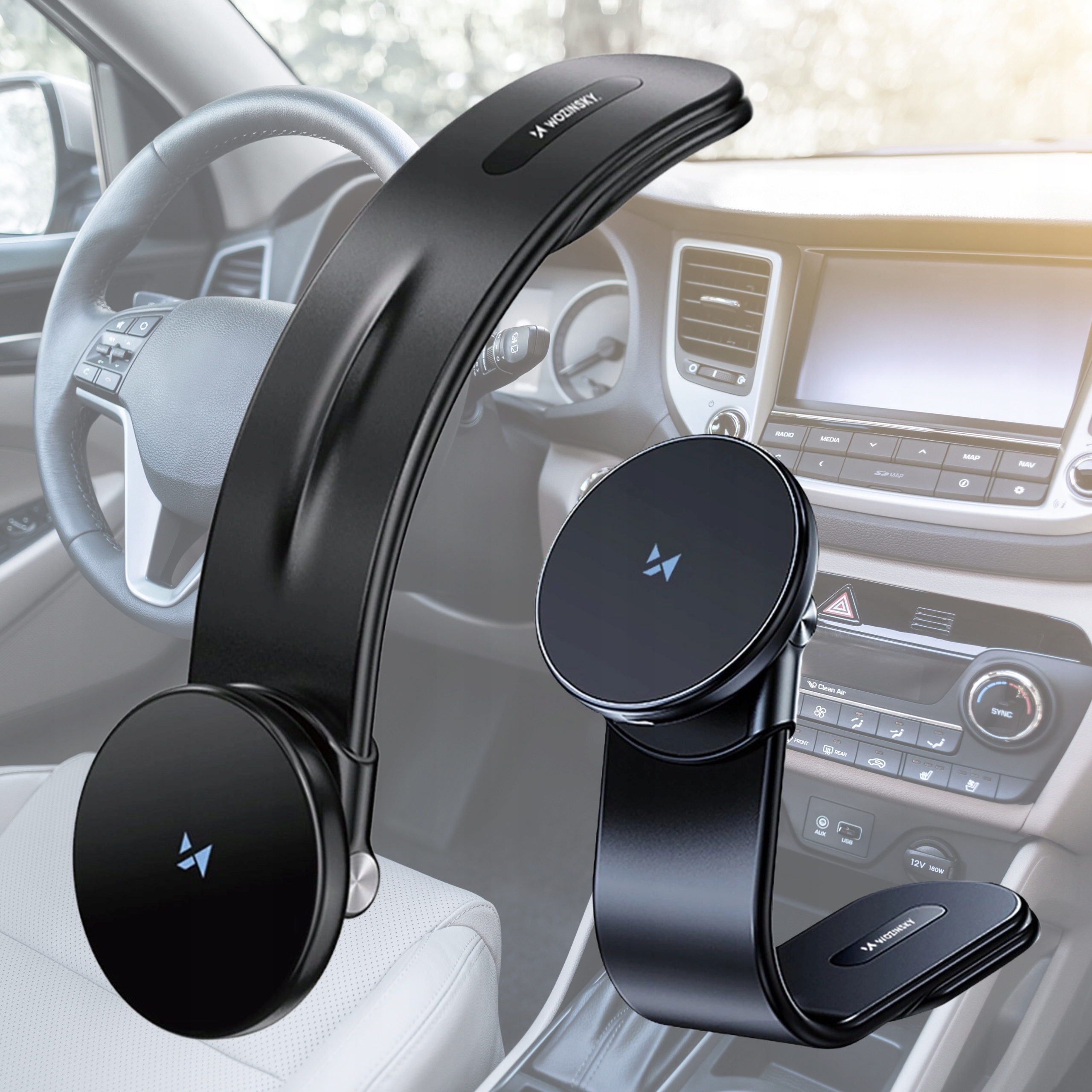 Minimalistyczna konstrukcja uchwytu nie tylko nie zajmuje miejsca, ale też świetnie wygląda – elegancko wpasowuje się w estetykę każdego wnętrza samochodu.