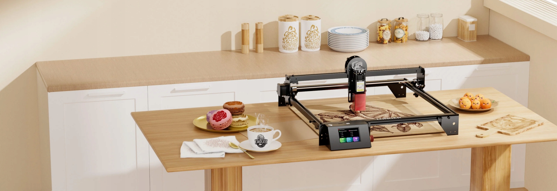 Grawerowanie i cięcie w trybie offline obsługiwane przez kolorowy ekran dotykowy o przekątnej 3.5 cala. Podczas grawerowania i cięcia nie jest potrzebne żadne połączenie z komputerem, co ułatwia spełnienie różnych wymagań dotyczących majsterkowania. Ekran dotykowy o przekątnej 3.5 cala jest dostępny zarówno w Ray5 5W, jak i 10W.