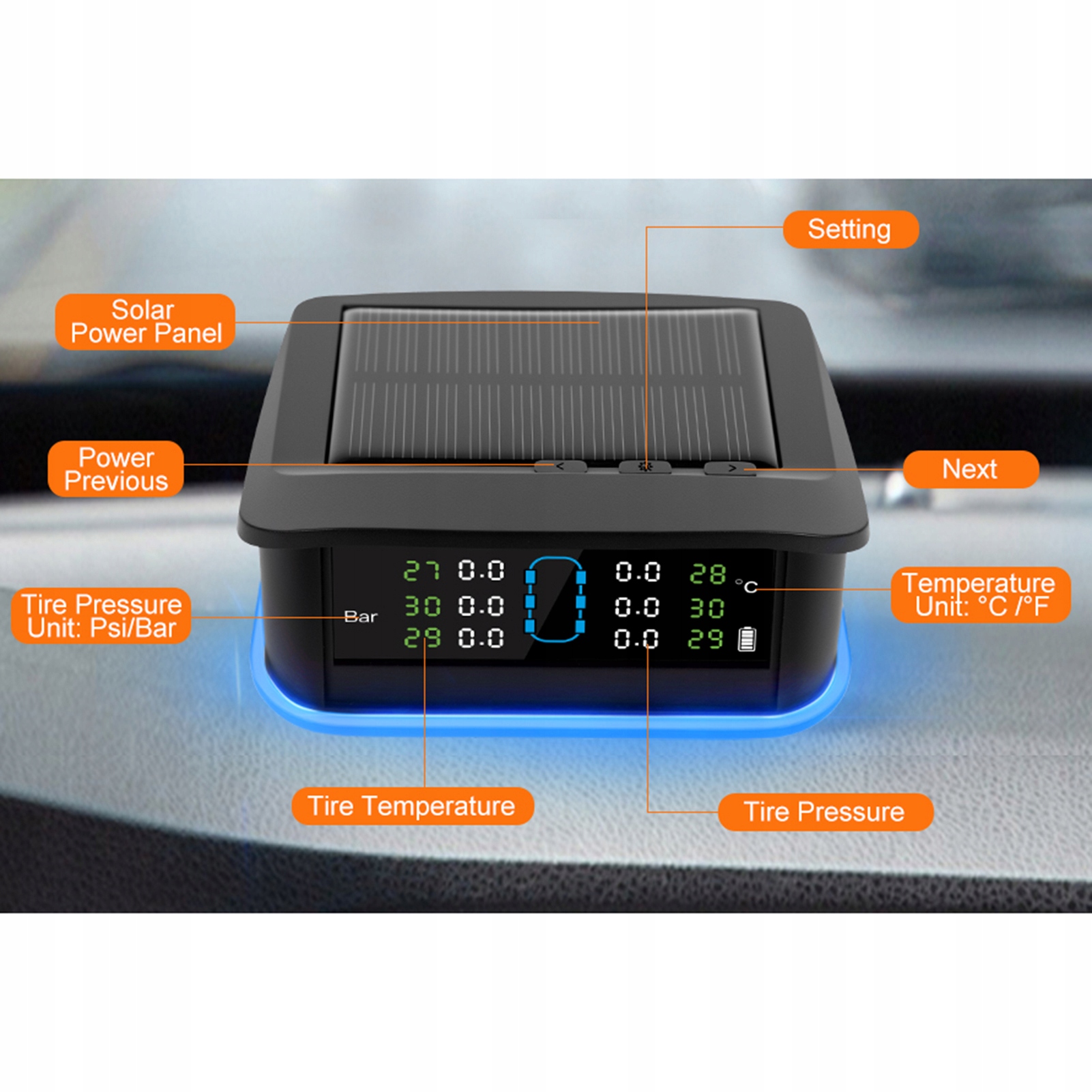 5. Konfigurowalne ustawienia ciśnienia i łatwa instalacja: Ustaw indywidualne progi ciśnienia dla opon przednich/tylnych w celu dopasowania specyfikacji pojazdu. Bezpiecznie zamontuje się na przedniej szybie taśmą klejącej - nie zagracona przestrzeń deski rozdzielczej ani zablokowanych widoków.
