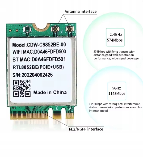 Prędkość Wi-Fi: 2,4 GHz - 574 Mb/s / 5 GHz - 1148 Mb/s
