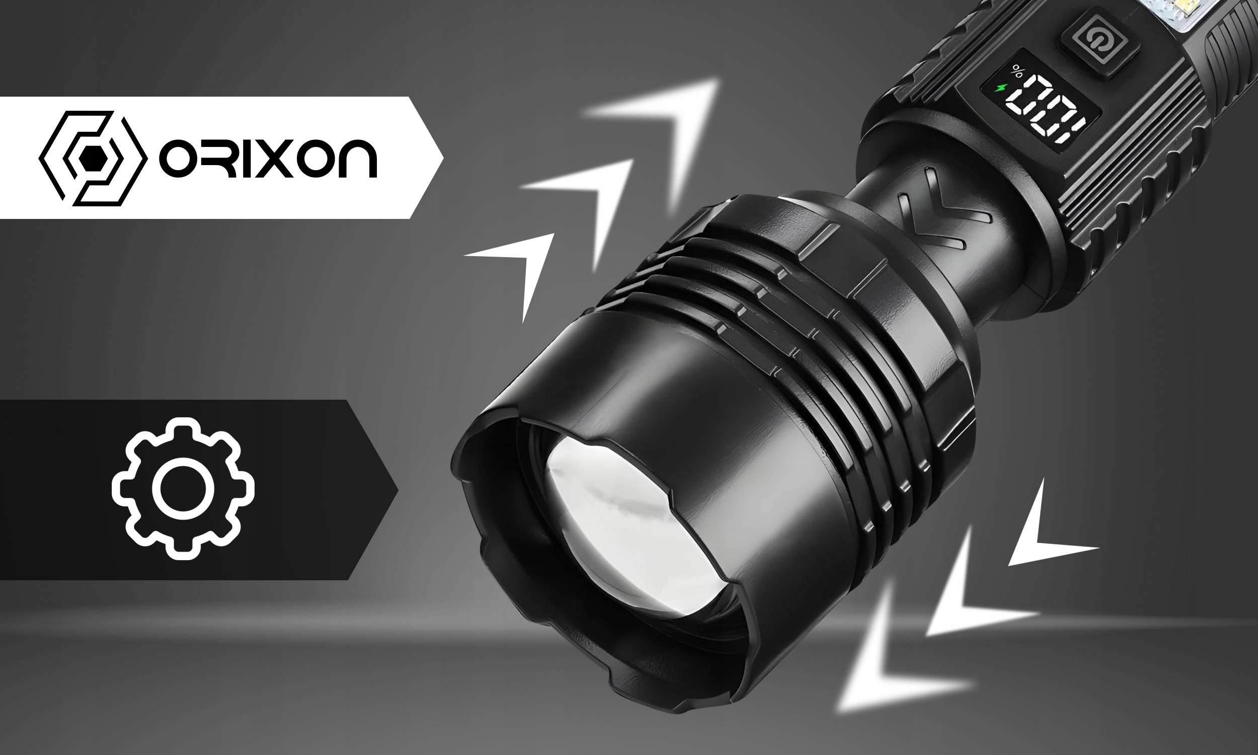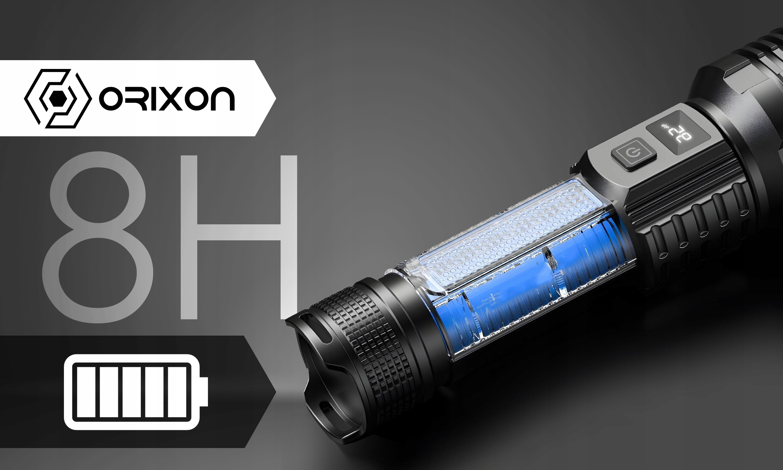 Latarka została wyposażona w intuicyjny i czytelny wyświetlacz, który w każdej chwili pokazuje dokładny procentowy stan baterii. Dzięki temu rozwiązaniu zawsze wiesz, kiedy warto doładować sprzęt, a kiedy spokojnie kontynuować działanie.