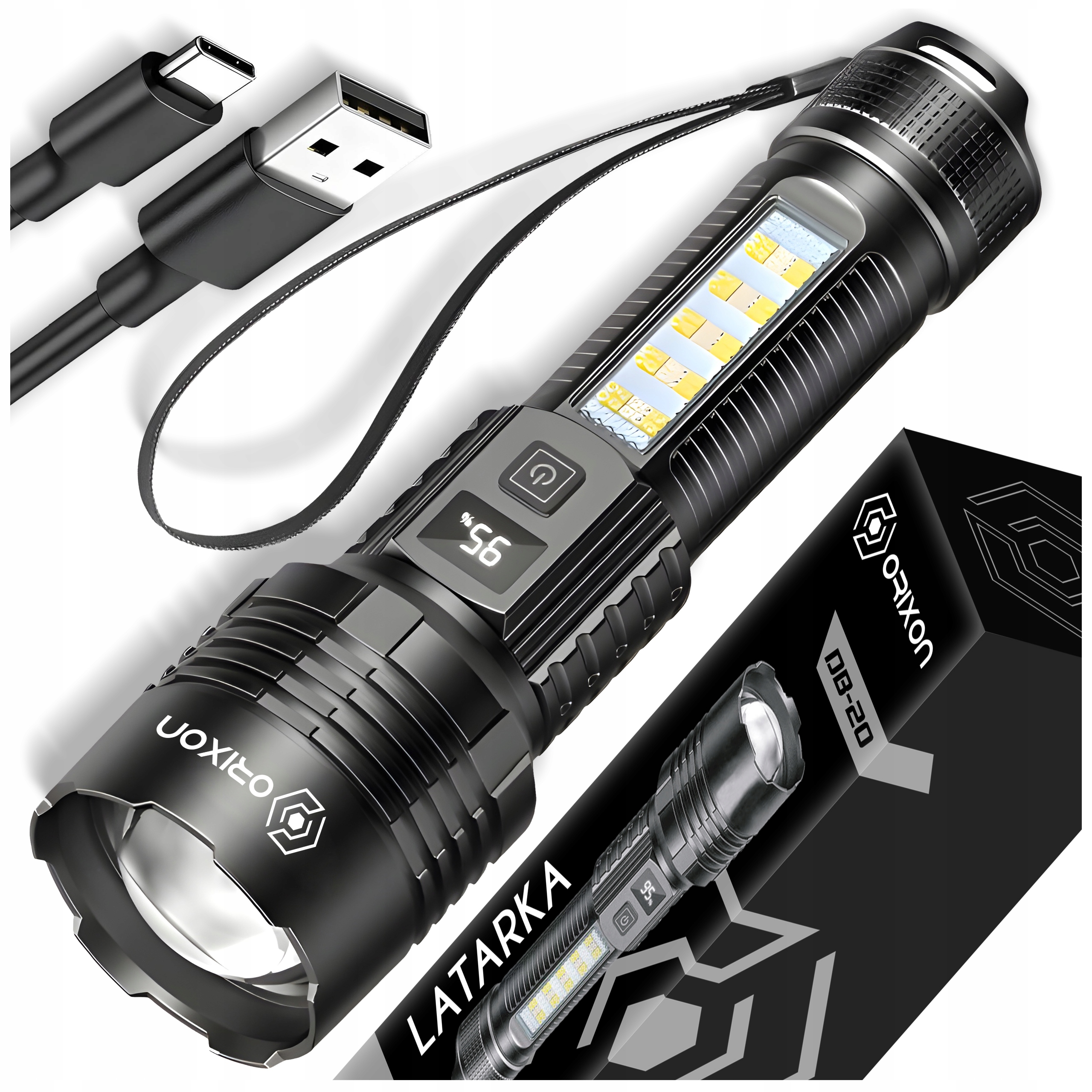 Nasza latarka taktyczna wyposażona jest w akumulator o pojemności 6800 mAh, który gwarantuje aż do 8 godzin niezawodnej pracy na jednym ładowaniu. Dodatkowo, ładowanie za pomocą kabla USB Typ-C sprawia, że szybko i wygodnie uzupełnisz energię, niezależnie od miejsca, w którym się znajdujesz.