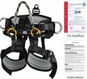 Certyfikat CE. Waga produktu: 3,3 funta (1,6 kg). Limit wagi: 300 kg. Wytrzymałość na zerwanie: 25 kN. Wykonane z wytrzymałego nylonu, z 2 pierścieniami łączącymi ze stopu magnezu. Nasze szelki są wygodne w noszeniu, oddychające i charakteryzują się niskim tarciem. Wyściółka w pasie i na nogach zapewnia dodatkowy komfort. Nogawki są chronione falistymi szwami i elastycznymi taśmami. Zapewnią Ci komfort podczas użytkowania.