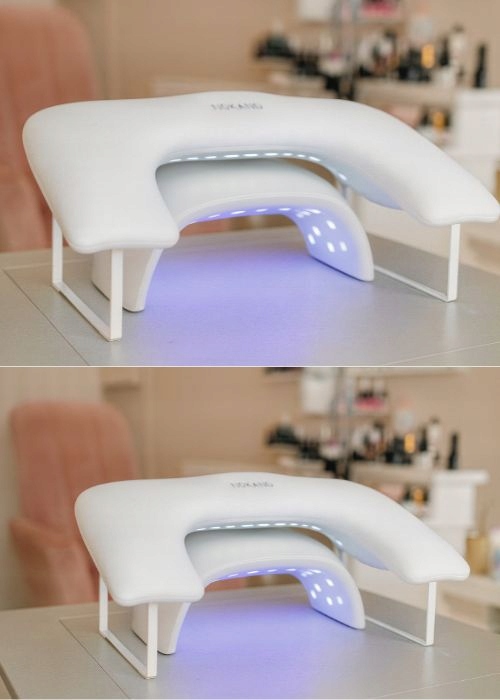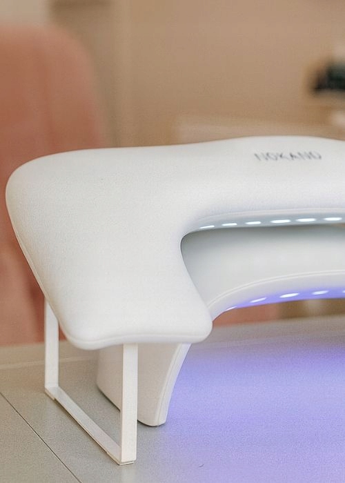 Podpórka Nokano została zaprojektowana z myślą o profesjonalistkach – dzięki niej dłonie klientki znajdują się na optymalnej wysokości, a nadgarstki stylistki są mniej obciążone.