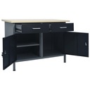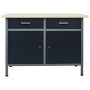 Ten wytrzymały stół do pracy z dużą ilością miejsca do przechowywania i o maksymalnym obciążeniu do 500 kg będzie niezbędnym dodatkiem do warsztatu i garażu. Duży i solidny blat będzie stabilnym miejscem do wszystkich prac naprawczych. Stół warsztatowy ma 2 szuflady, dzięki czemu pozwoli dobrze uporządkować narzędzia, części i akcesoria, takie jak śruby, gwoździe i taśmy klejące. Szuflady wyposażone są w prowadnice z łożyskami kulkowymi w celu płynnego wysuwania. Mebel ma również odpowiednie przegrody na większe narzędzia i 2 szafki z zamykanymi drzwiami, w których można łatwo pomieścić wiertarki, kable na bębnach i szlifierki. Dodatkowo stopki mają regulowaną wysokość, możesz więc umieścić swój stół roboczy tam, gdzie go potrzebujesz i stabilnie ustawiać nawet na nierównym podłożu. Mebel ten wykonano z najlepszej stali i materiału drewnopochodnego, dzięki czemu jest wyjątkowo wytrzymały, trwały i łatwy do czyszczenia. Montaż jest prosty. Ten stół warsztatowy będzie doskonałym pomocnikiem niezależnie od tego, czy chcesz zakończyć prace remontowe, czy spełnić marzenia o miejscu do majsterkowania!