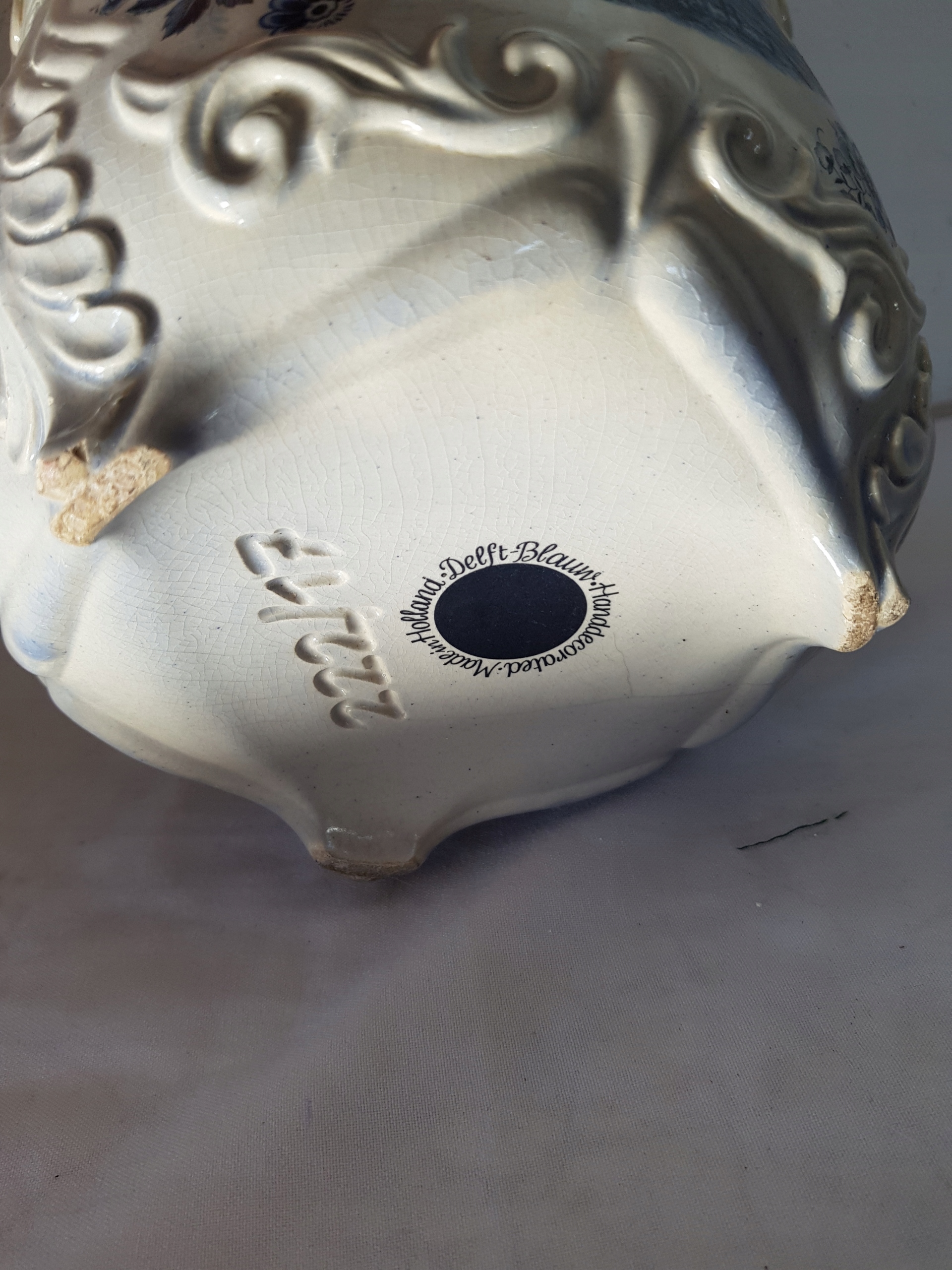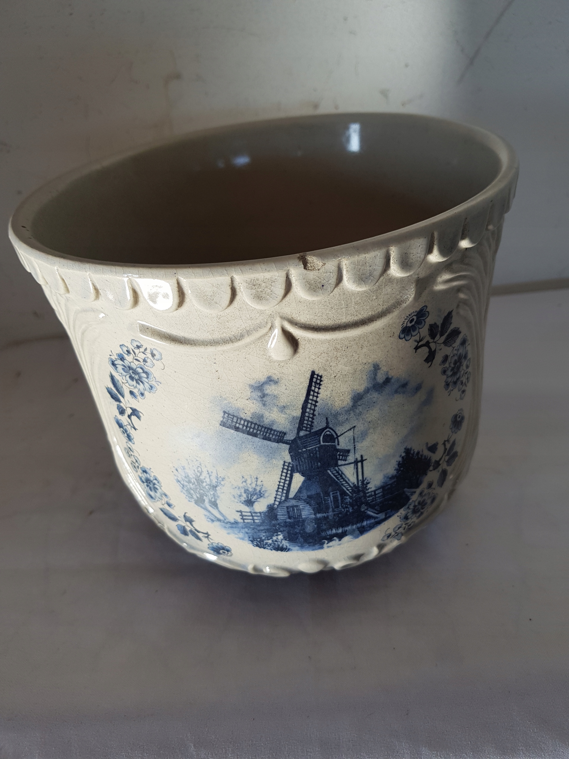 Wysokość 17 cm, średnica góra 18.5 cm, donica ma odprysk i popękaną politurę, zapraszam na pozostałe moje aukcje.