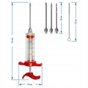 Nastrzykiwarka wykonana jest z plastiku przeznaczonego do kontaktu z żywnością i charakteryzuje się kompaktową konstrukcją z ergonomicznym uchwytem oraz szczelnym tłokiem z gumową uszczelką. Dokładna podziałka na korpusie ułatwi dawkowanie zalewy peklującej. Igły z nierdzewnej stali są przykręcane do korpusu, dzięki czemu zachowują odpowiednią stabilność podczas wbijania i nastrzykiwania. Urządzenie możesz z łatwością obsługiwać jedną ręką.