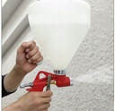 Pojemnik pistoletu zakryty jest do połowy co umożliwia malowanie sufitów bez stosowania żadnych dodatkowych kolanek, pokryw itp. rozwiązań.